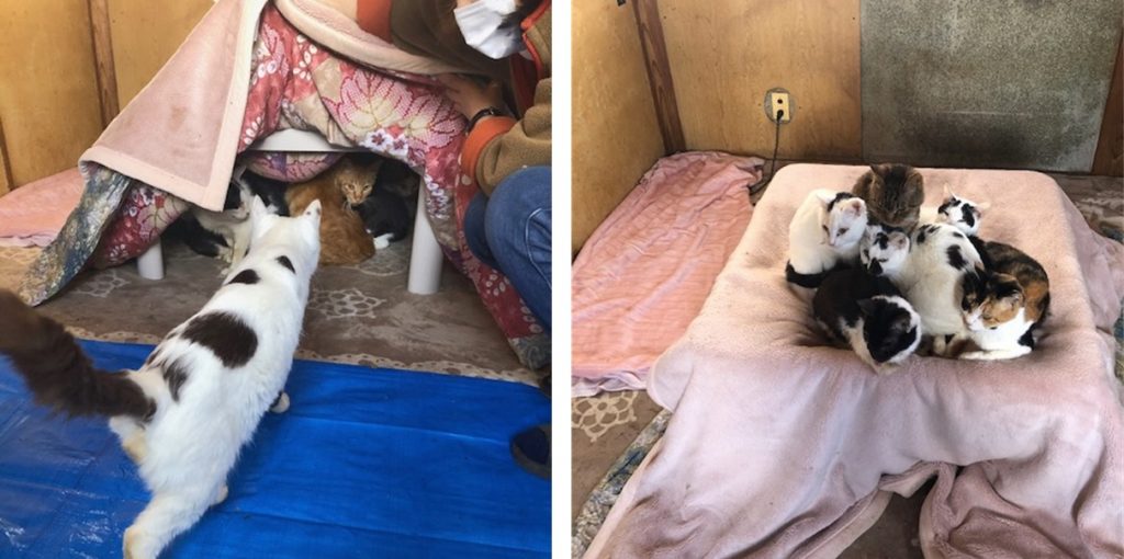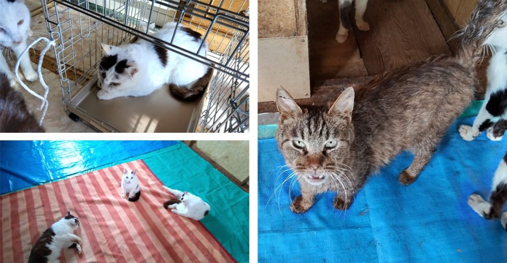 2. 保護した5頭のうち、2頭は譲渡できたが3頭が残ってしまった。さらに近くの工場に捨てられた猫を保護しているうちに繁殖。最終的に21頭まで増えてしまった。
