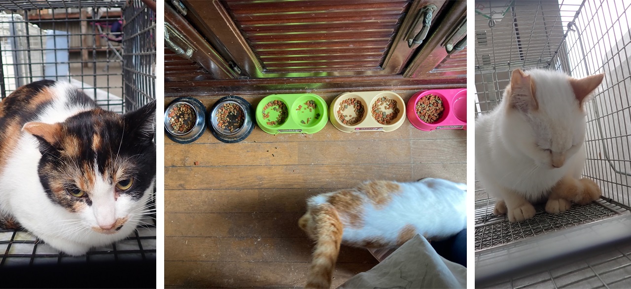 7. 手術後、ボランティア団体がトイレを増設(どの猫も使用しないトイレは現在撤去されている)。爪とぎによって破損していた柱については、巻き付けるタイプの爪とぎを設置できないか検討中である。