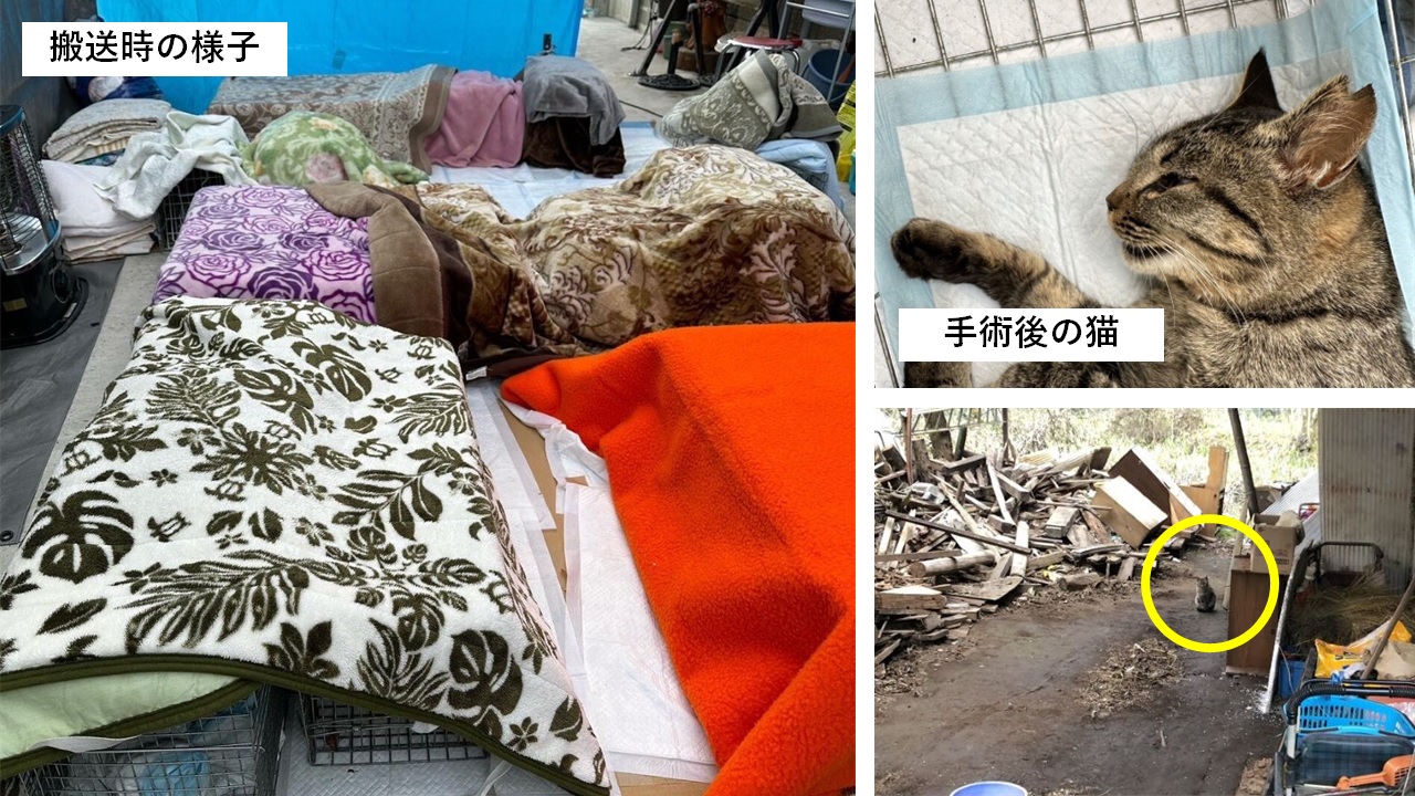 - 所有していた別の住居の一部屋が地元の大工さんによって修理され、当事者は建物の中で生活できるようになった。手術済みとなった成猫11頭はこのまま当事者宅周辺に住み続ける。