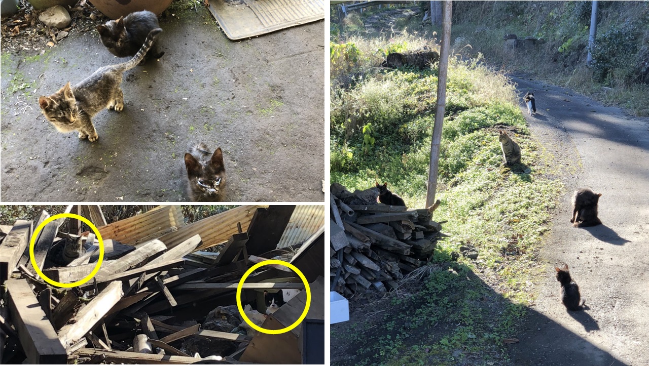 - 支援時に確認したところ、実際には成猫11頭、子猫3頭の計14頭だった。