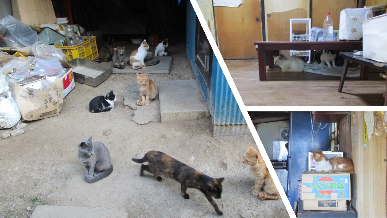 3. 隣宅から猫を20~30頭を飼育しているという情報があり、多頭飼育崩壊の心配、糞尿等で迷惑していると連絡があった。その後、動物愛護団体に情報提供を行い、現場を確認して発覚。