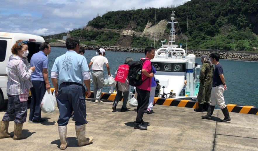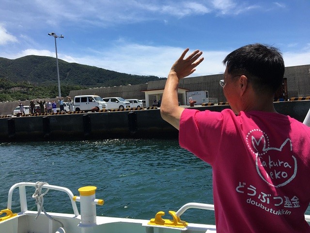 島民の方たちが見送りに駆けつけてくれました。すっかりどうぶつ基金の仲間です。