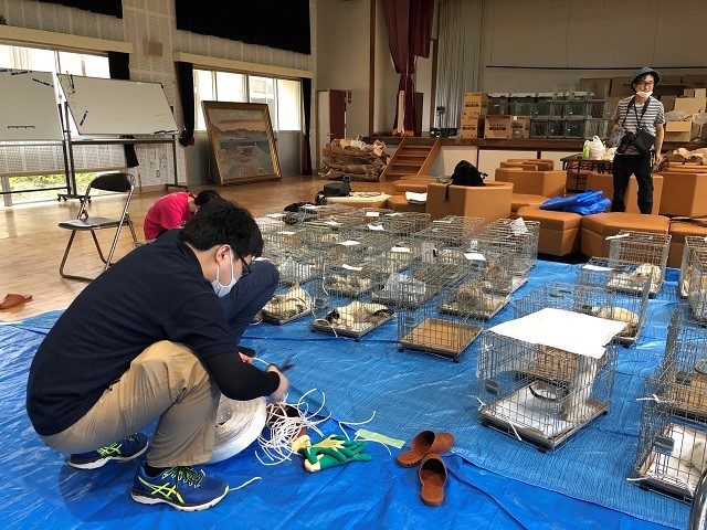 3月の調査では約100頭の猫が生息していましたが、記録的な豪雨災害のため、