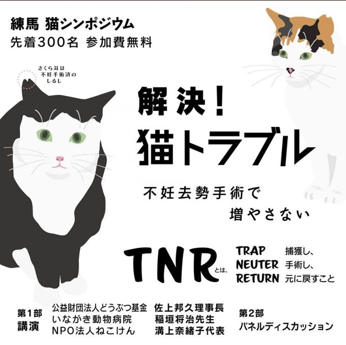 理事長(佐上邦久)が練馬 猫シンポジウムで講演します。素晴らしい理念は全国に広がったが実践されない地域猫。TNRを先行することで実践されてきました。実践できて解決できる「さくらねこTNR」(TNR先行型地域猫活動)の最新事例についてお話しします。