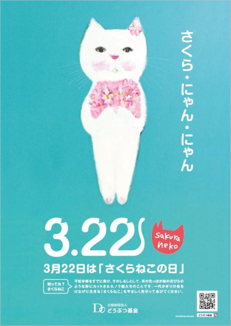 猫の殺処分ゼロを目指す公益財団法人「どうぶつ基金」は、不妊手術を終えた猫の耳先を、目印としてさくらの花びらの様にカットした「さくらねこ」のことを全国に広げるために3月22日を「さくらねこの日」と制定しました。