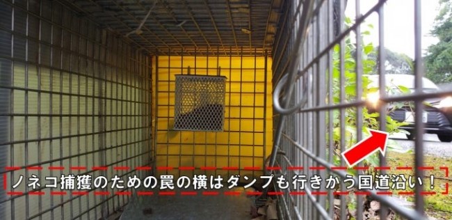 ※環境省から丸投げされた下請け業者が道路交通法を犯して旧国道に設置されたネコ駆除のワナ