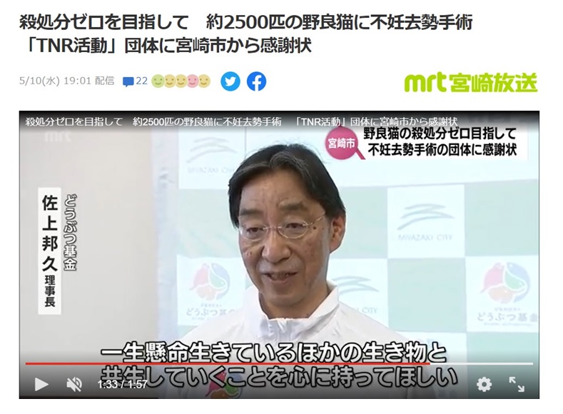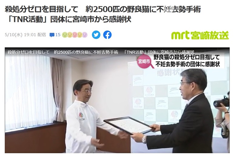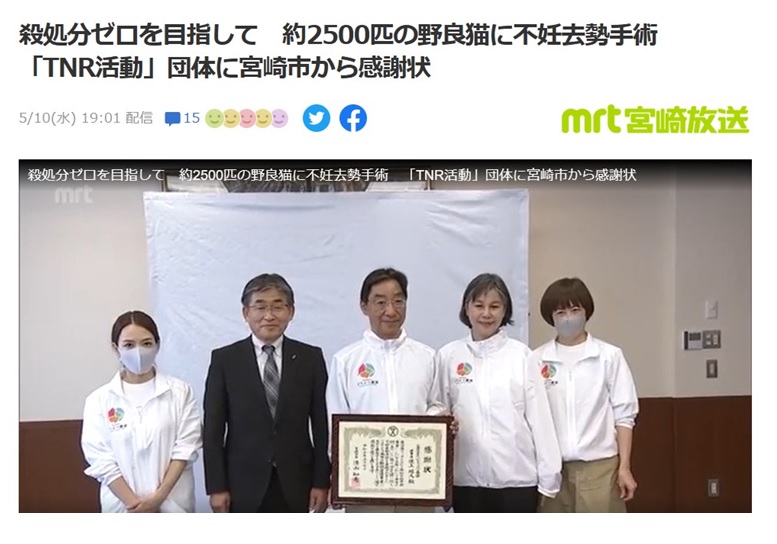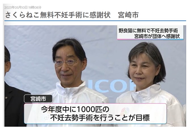 宮崎市のノラ猫約2500匹に不妊手術、ノミダニ駆除、ワクチン投与などを