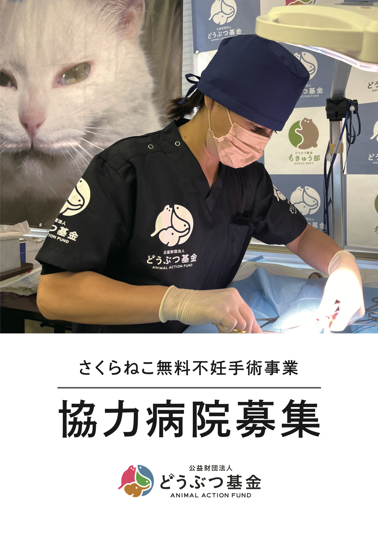 飼い主のいない猫の問題を解決する「さくらねこTNR」は、動物病院の協力なくしては成り立ちません。殺処分ゼロ達成のため、獣医療を必要とする猫や犬を救うため、そして、助けを求める地域の方々を支援するためには、もっともっと多くの動物病院の協力が必要です。