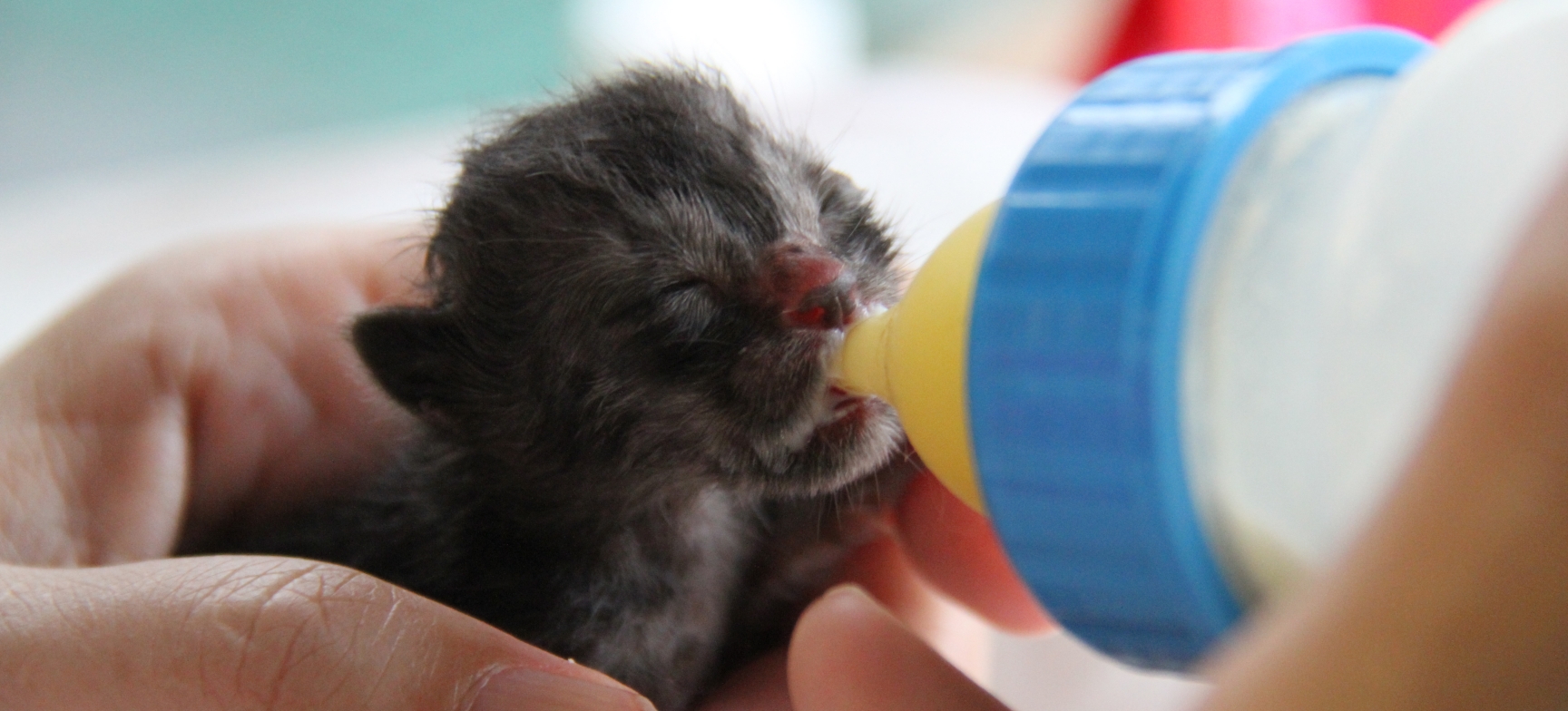 - すぐに動物病院に連れて行けない場合は、猫用ミルクを用意して少量ずつ飲ませましょう。生まれたての子猫は哺乳瓶からミルクを飲むことができないため、スポイトやシリンジで少量ずつ与えてください。