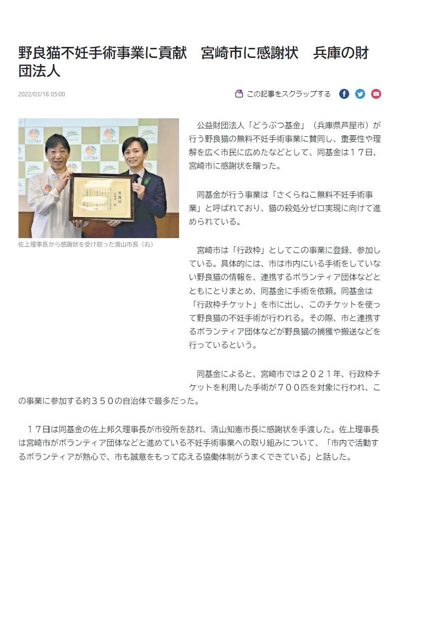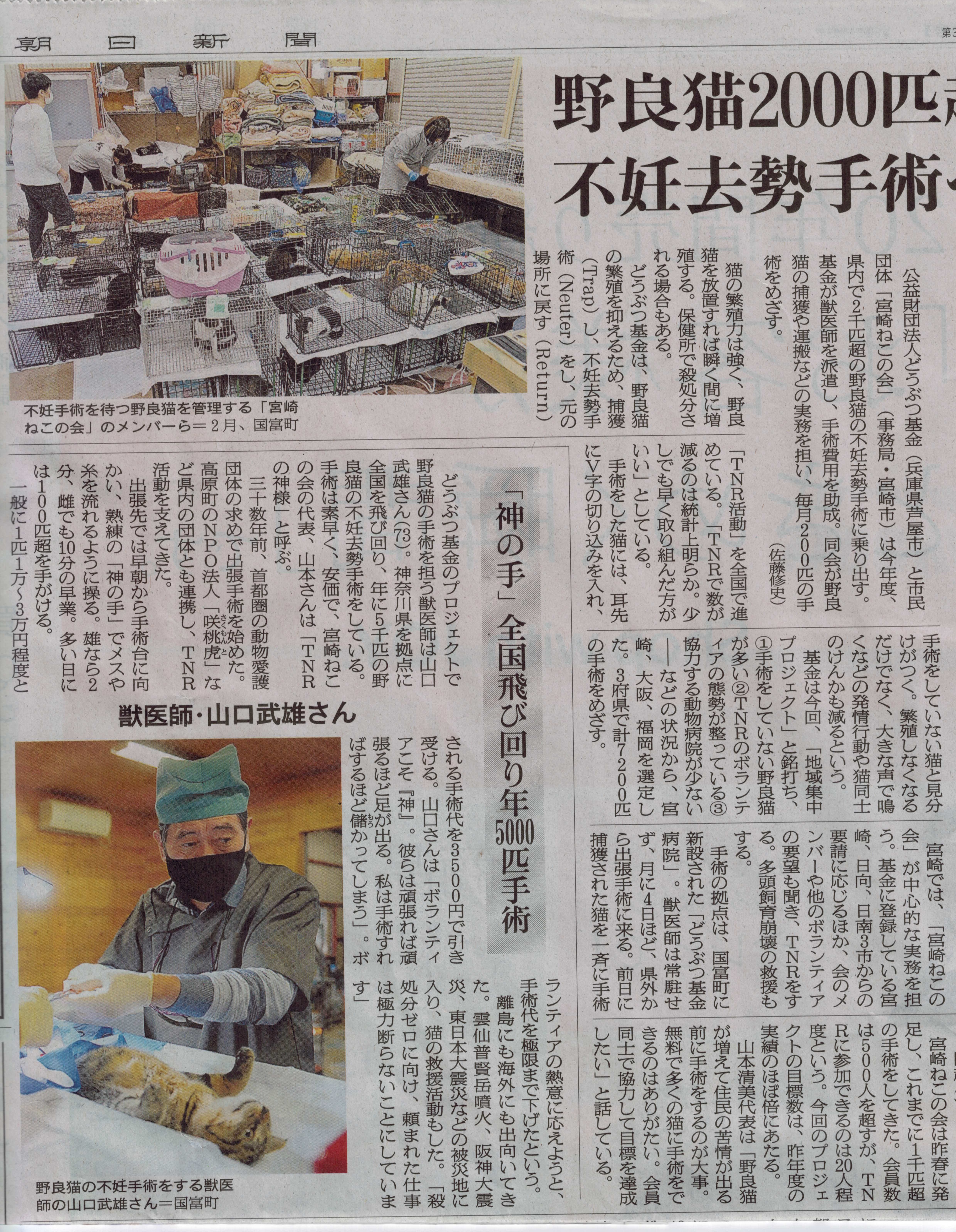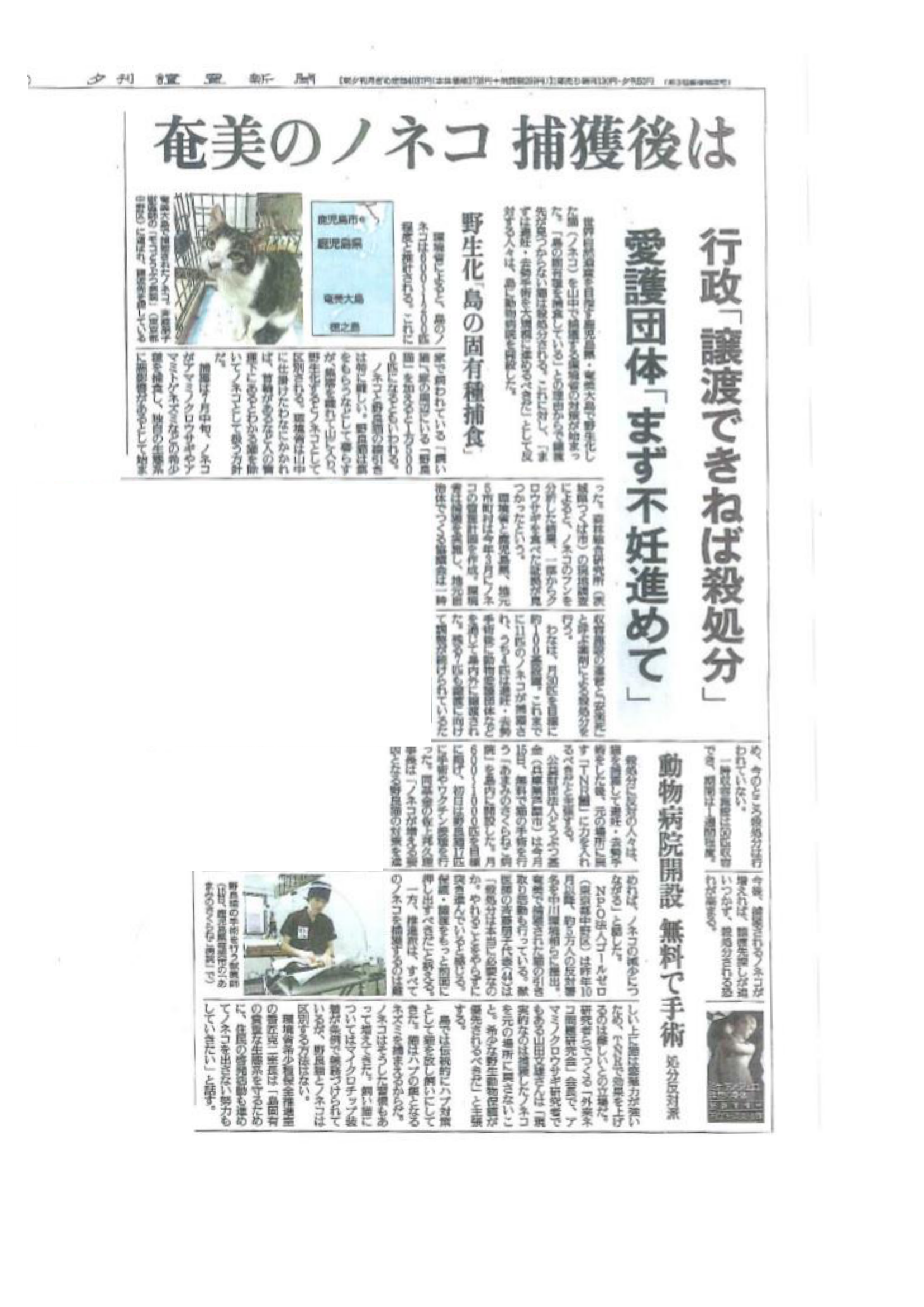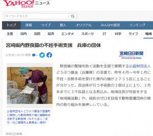 野良猫2千匹超不妊手術へ どうぶつ基金と宮崎ねこの会