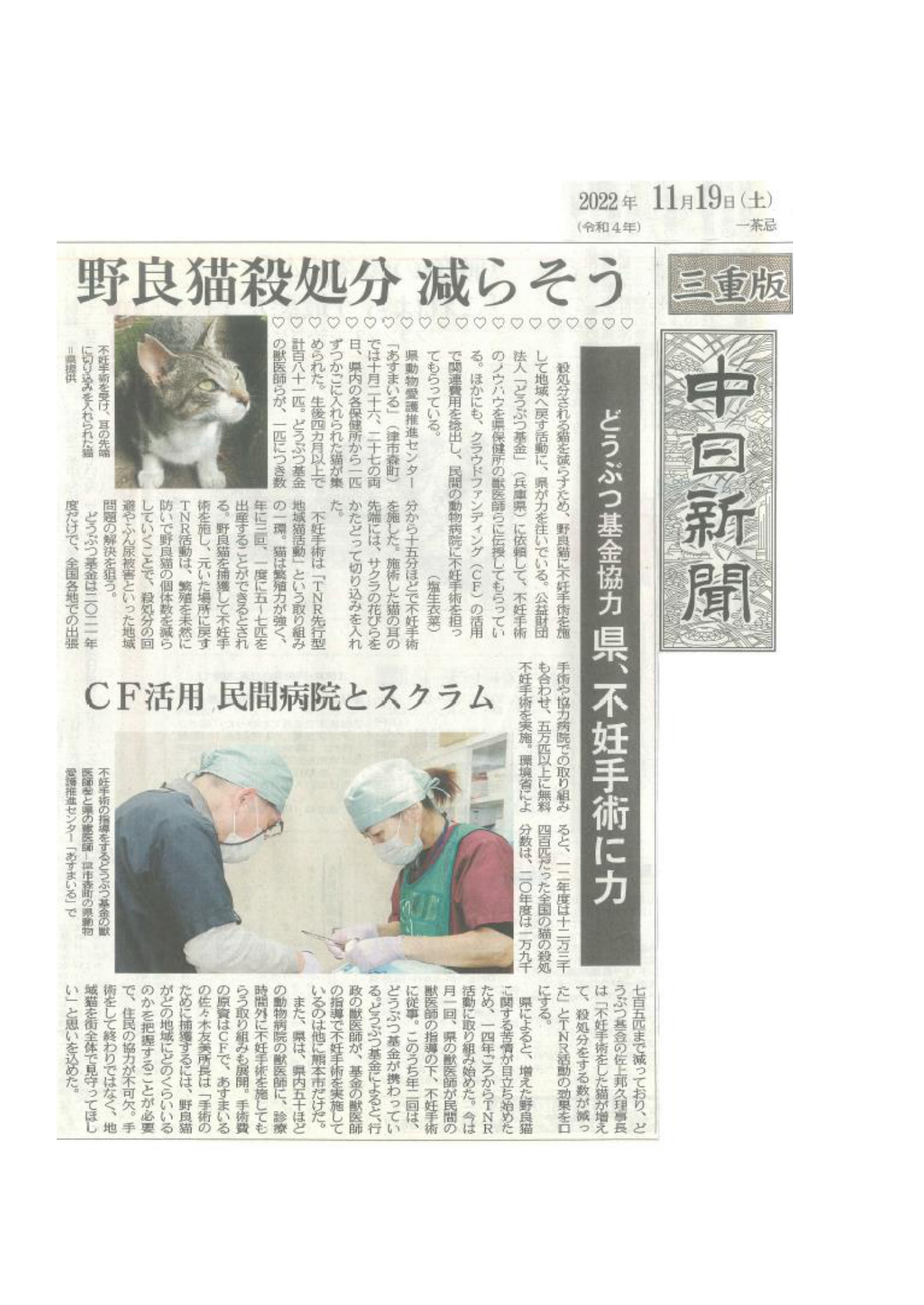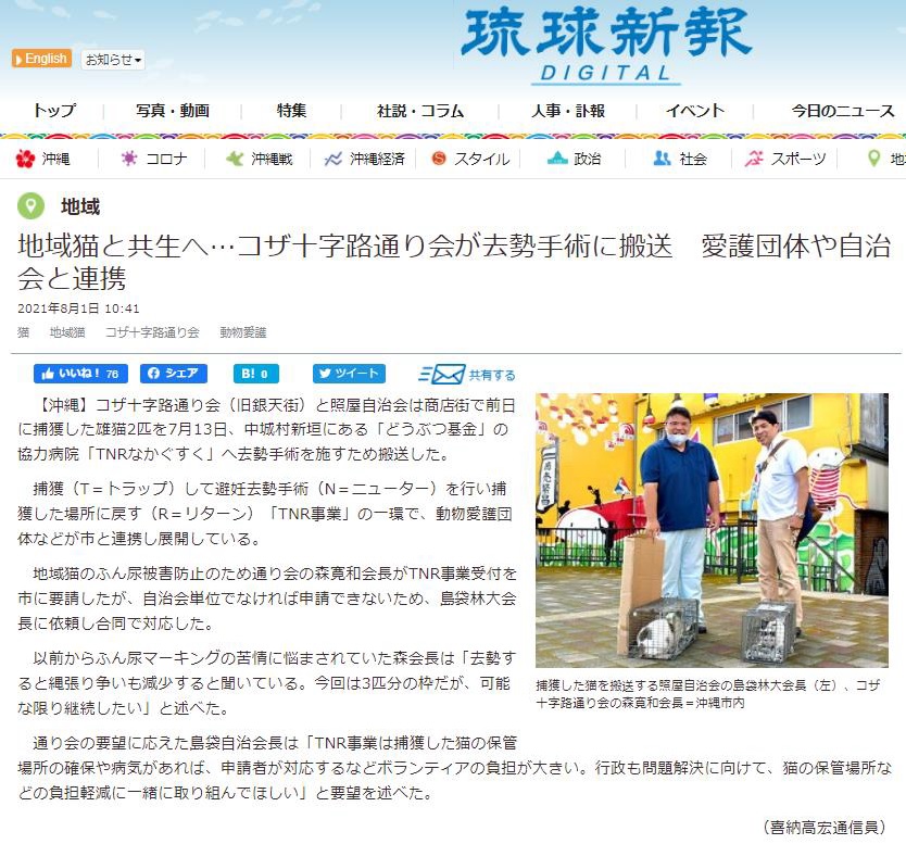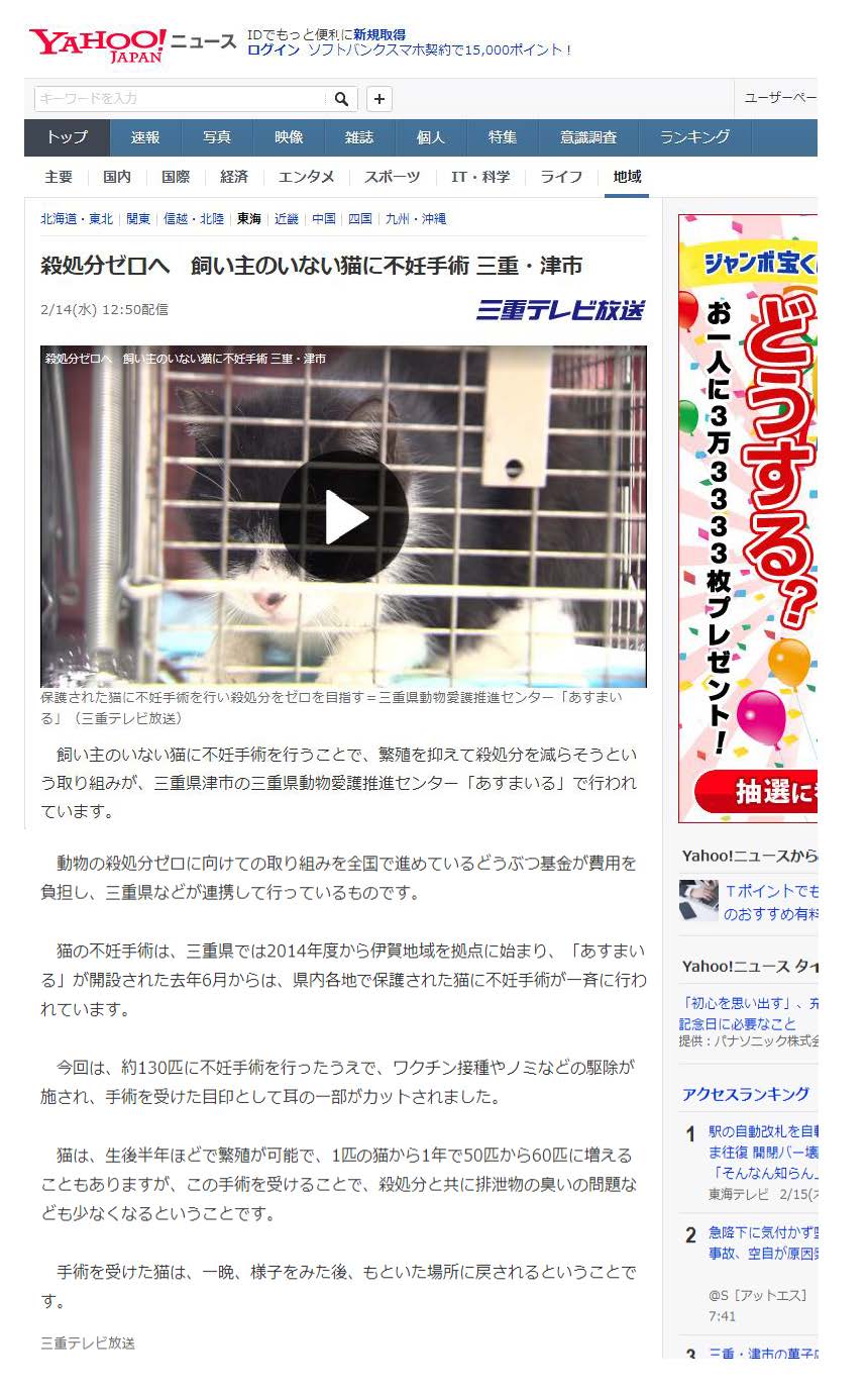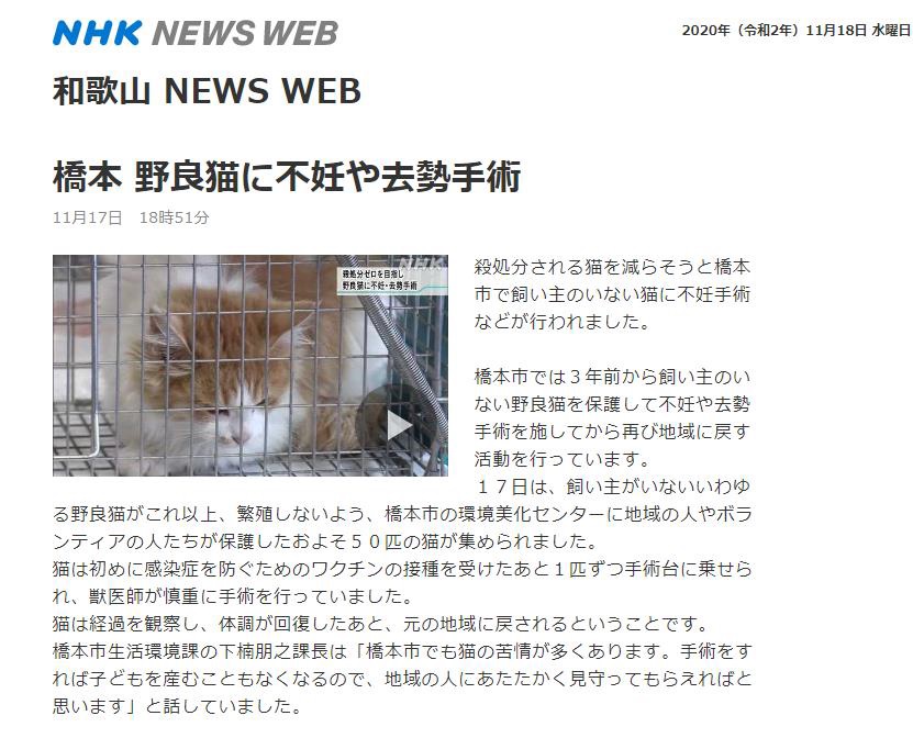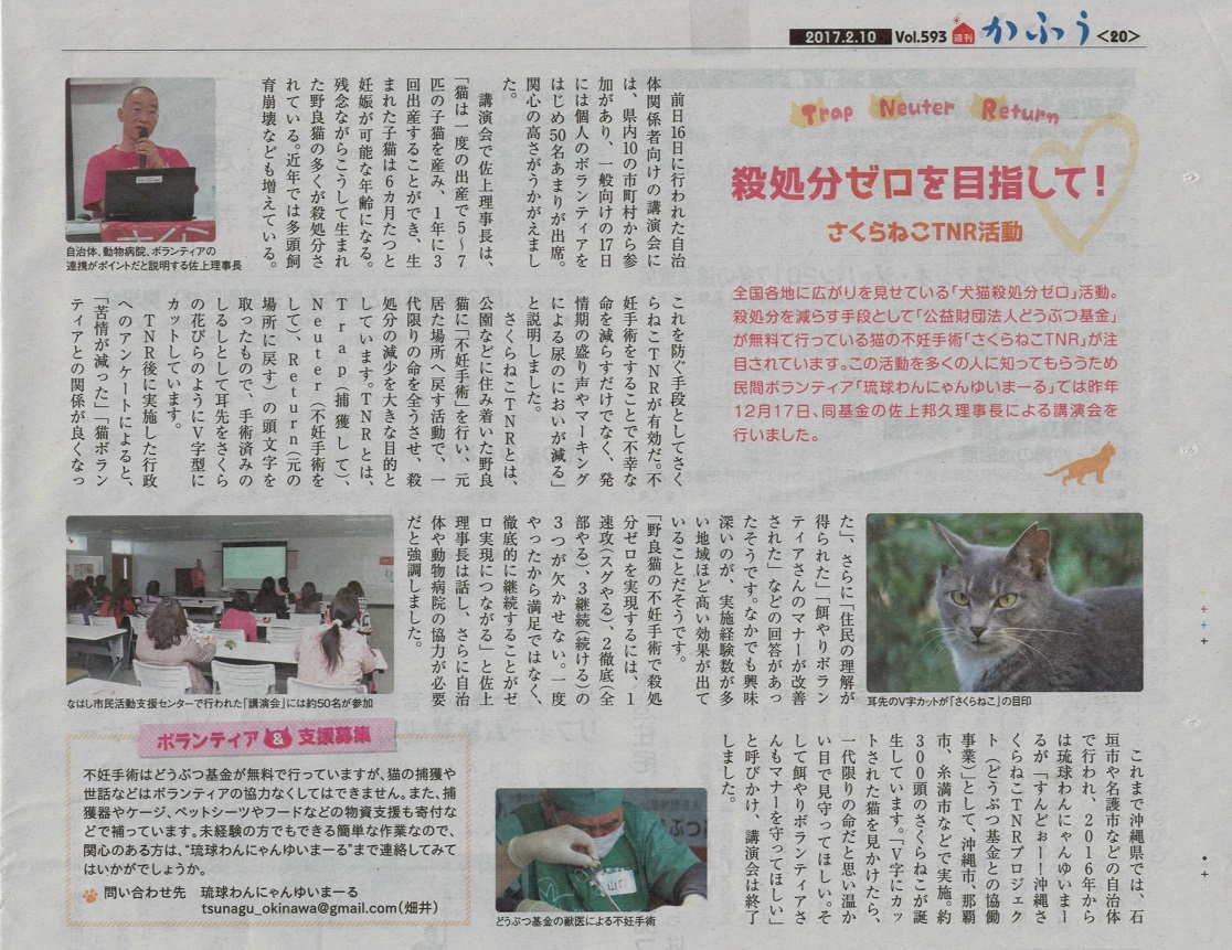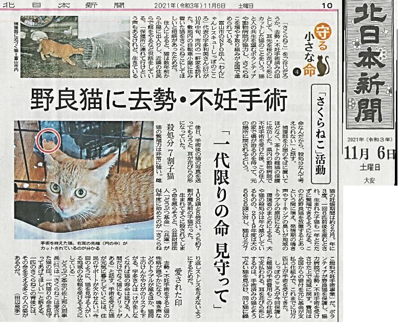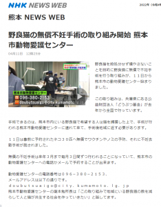 「さくらねこ無料不妊手術事業」が紹介されました。