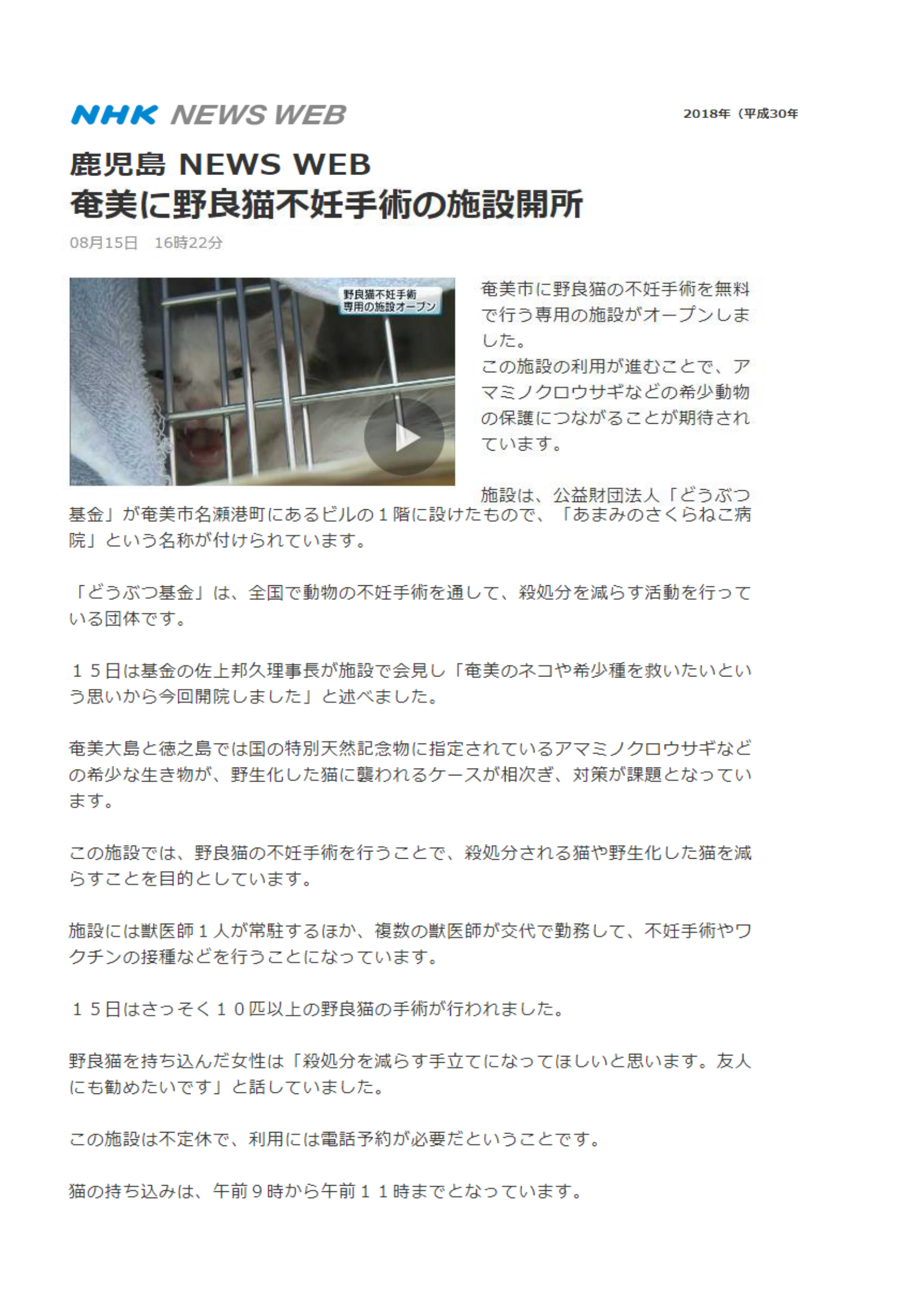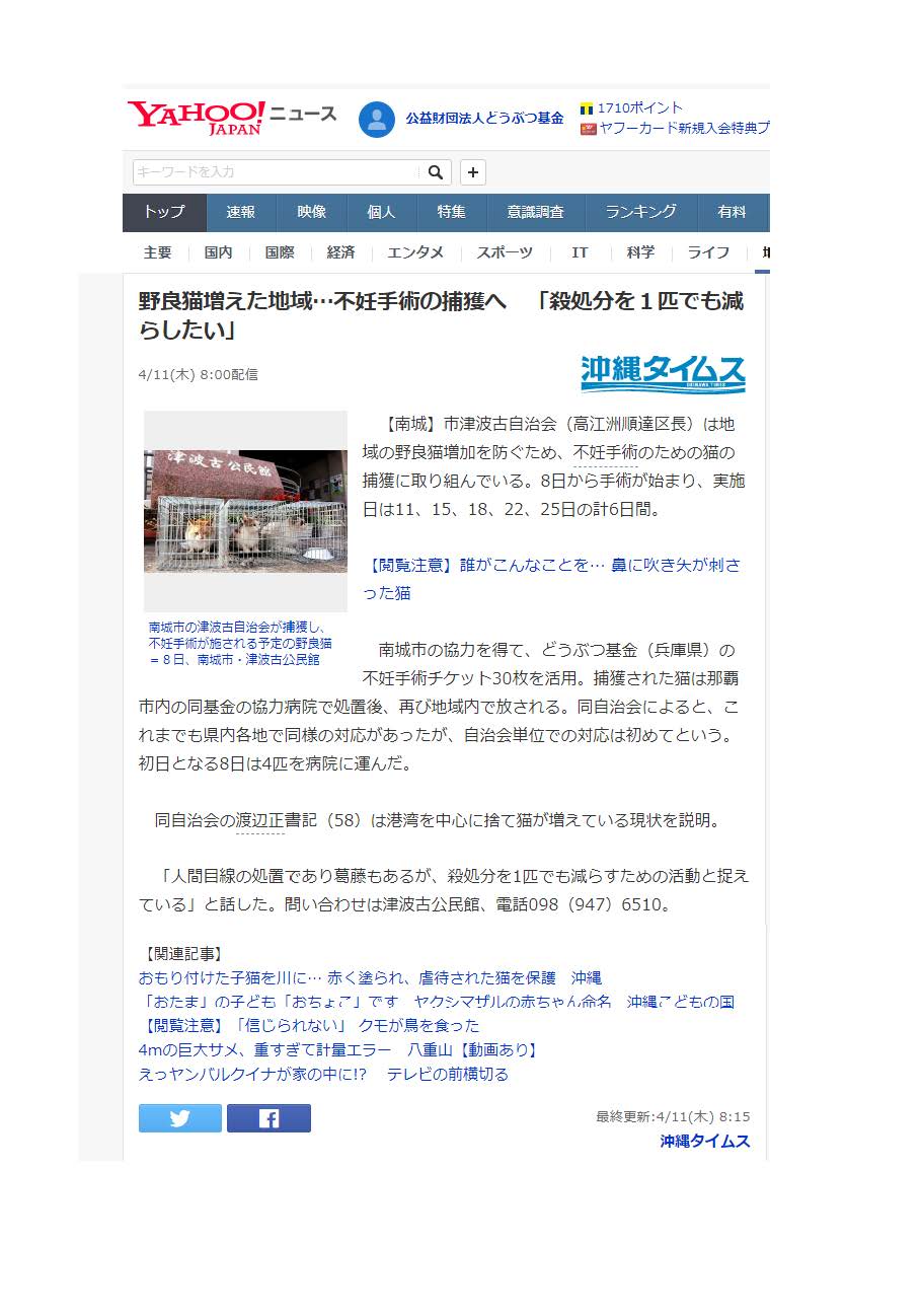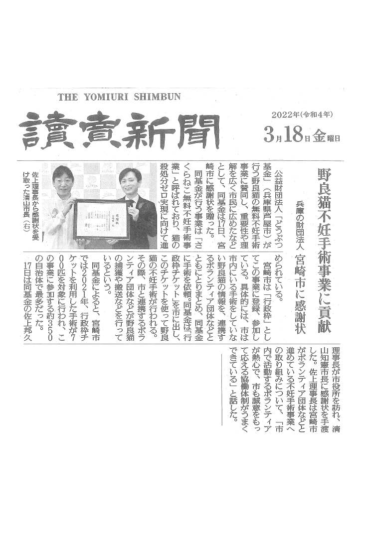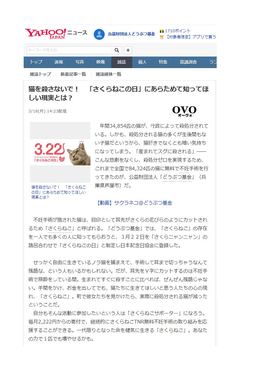 「さくらねこ無料不妊手術事業」が紹介されました。