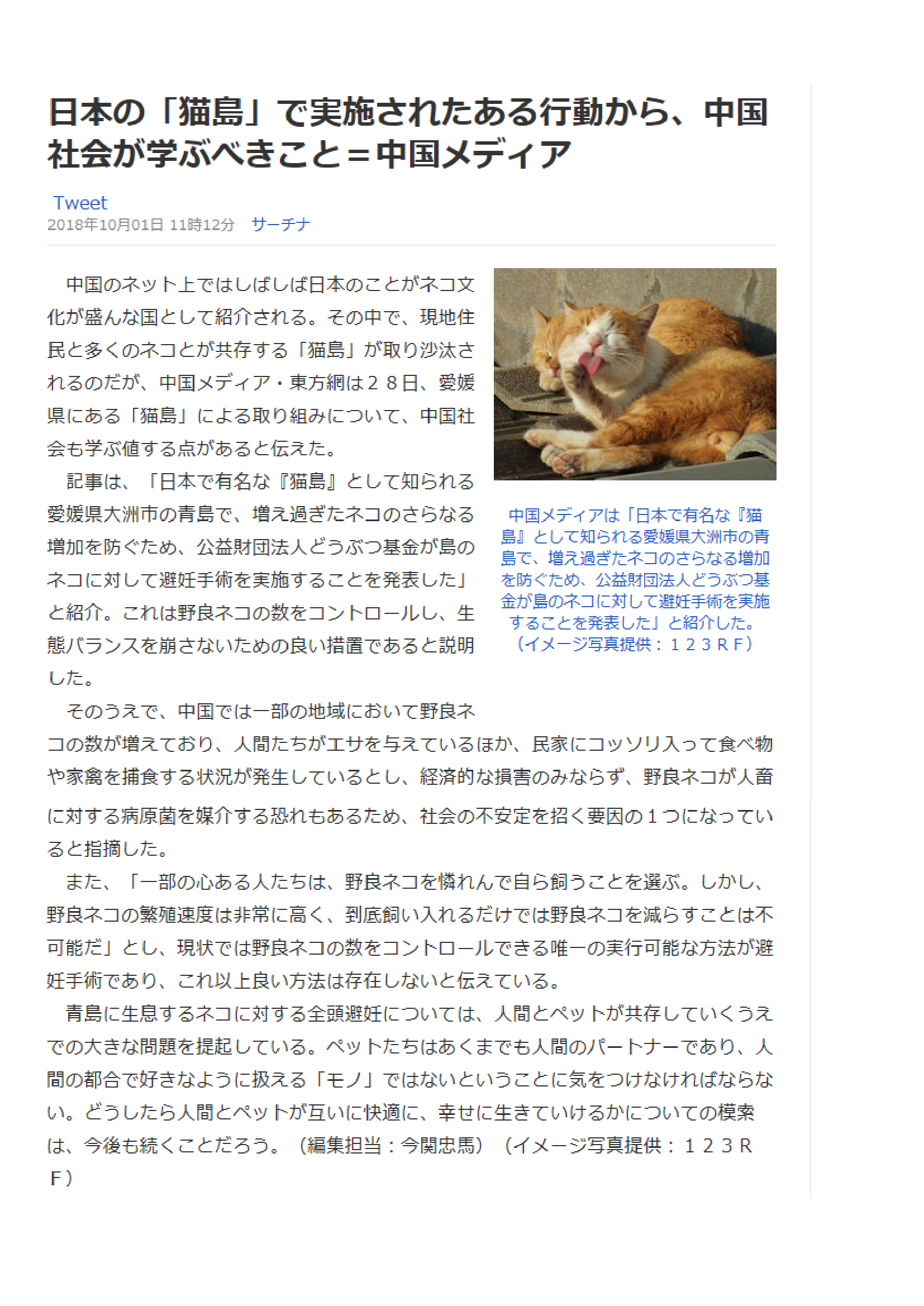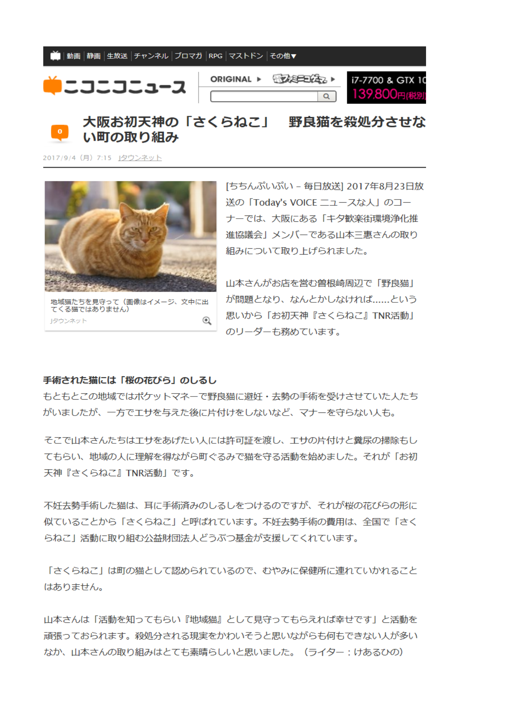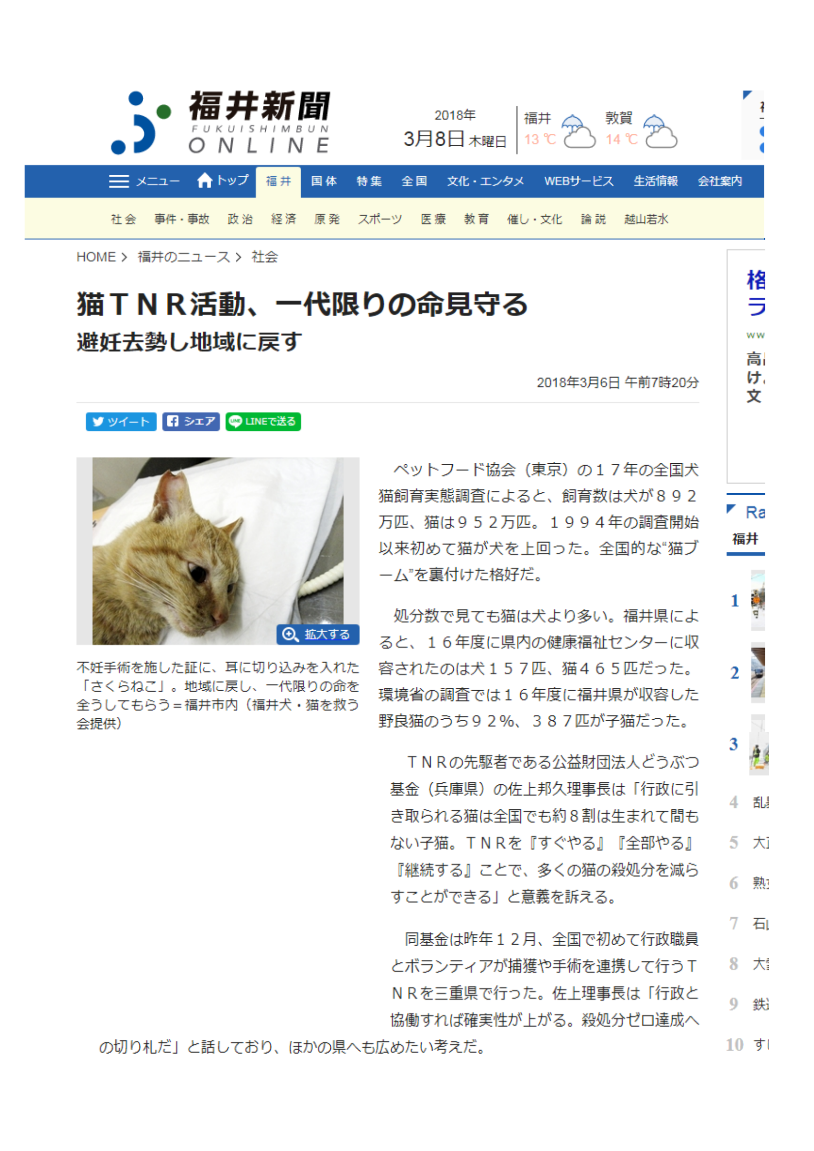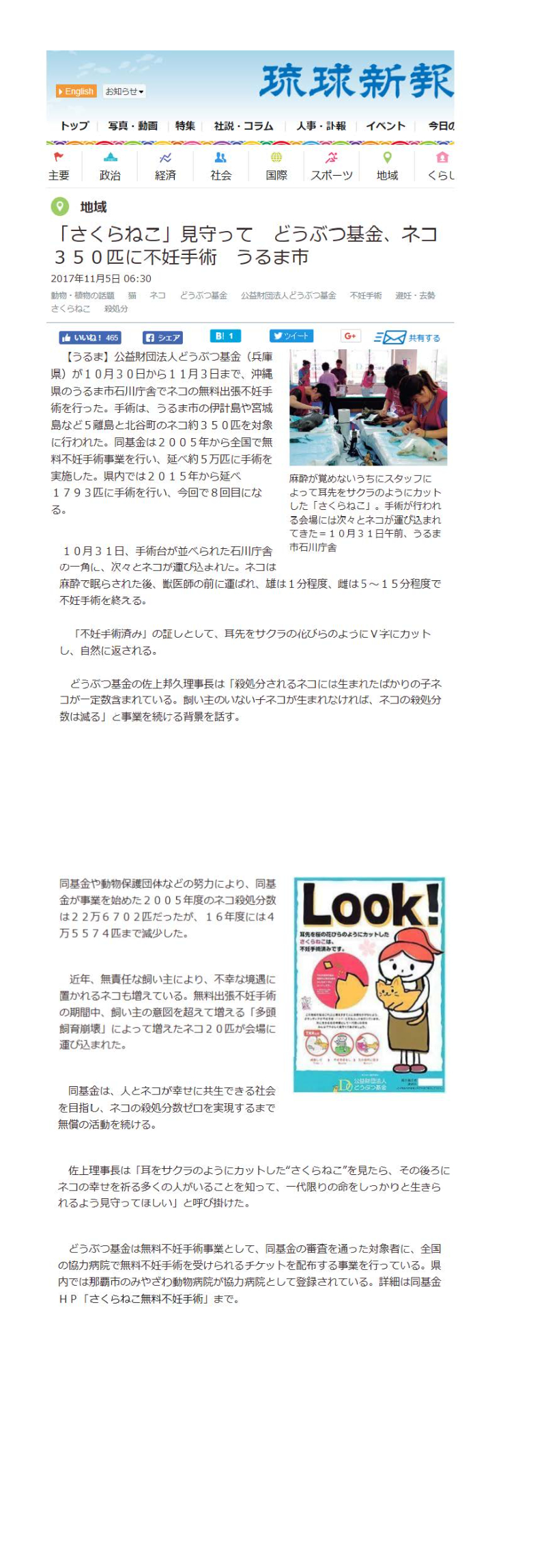 「さくらねこ無料不妊手術事業」が紹介されました。