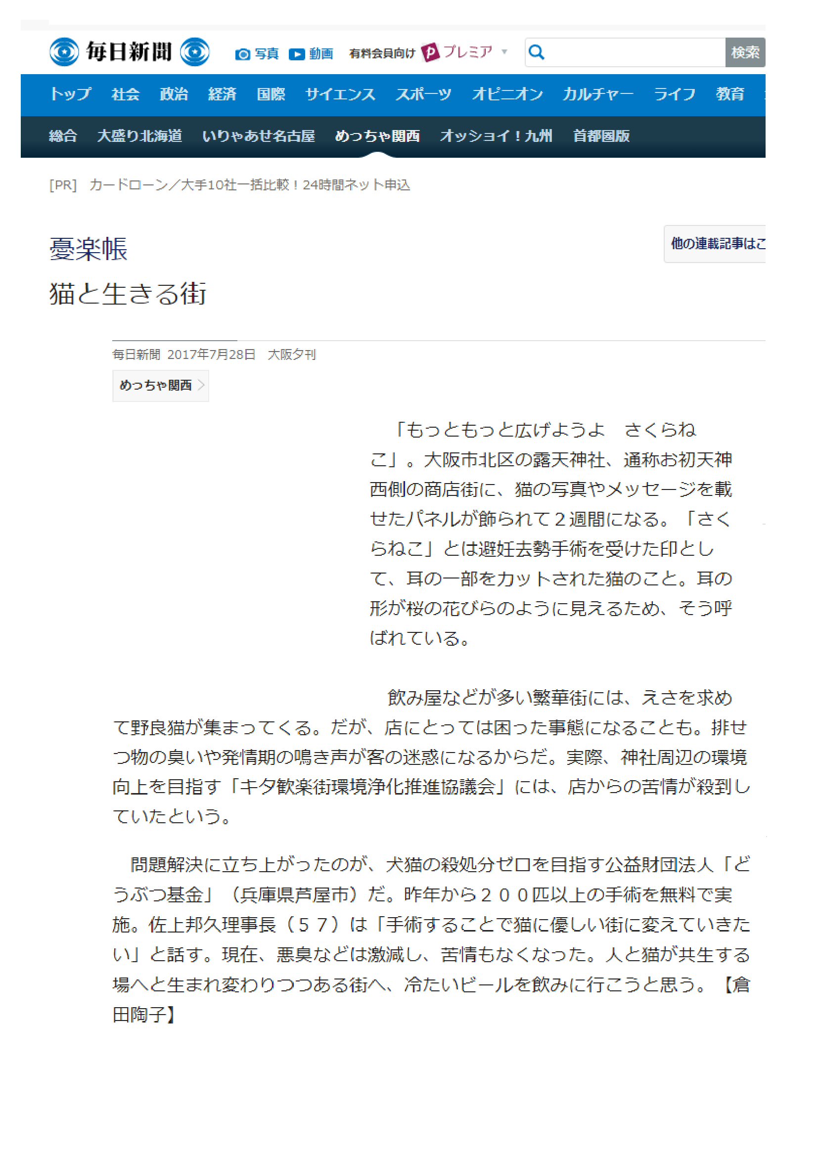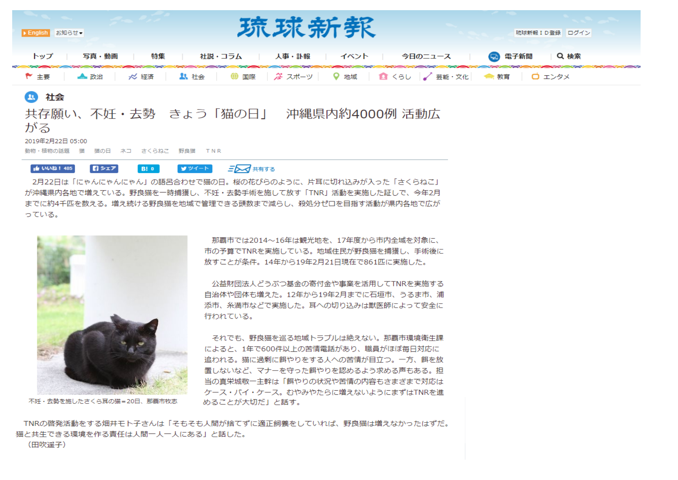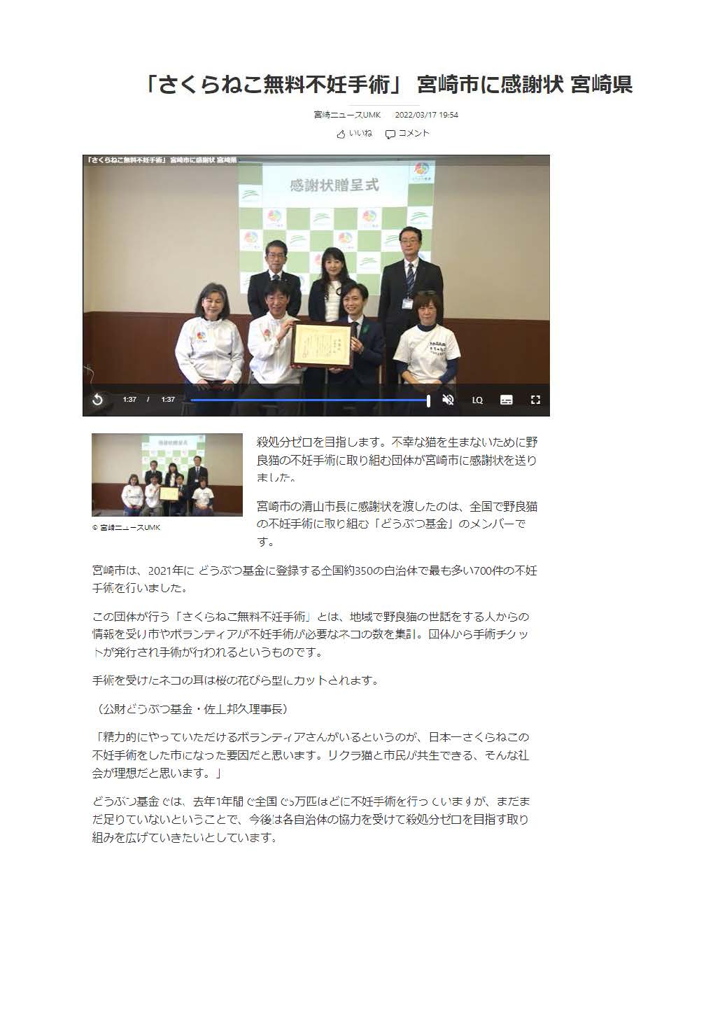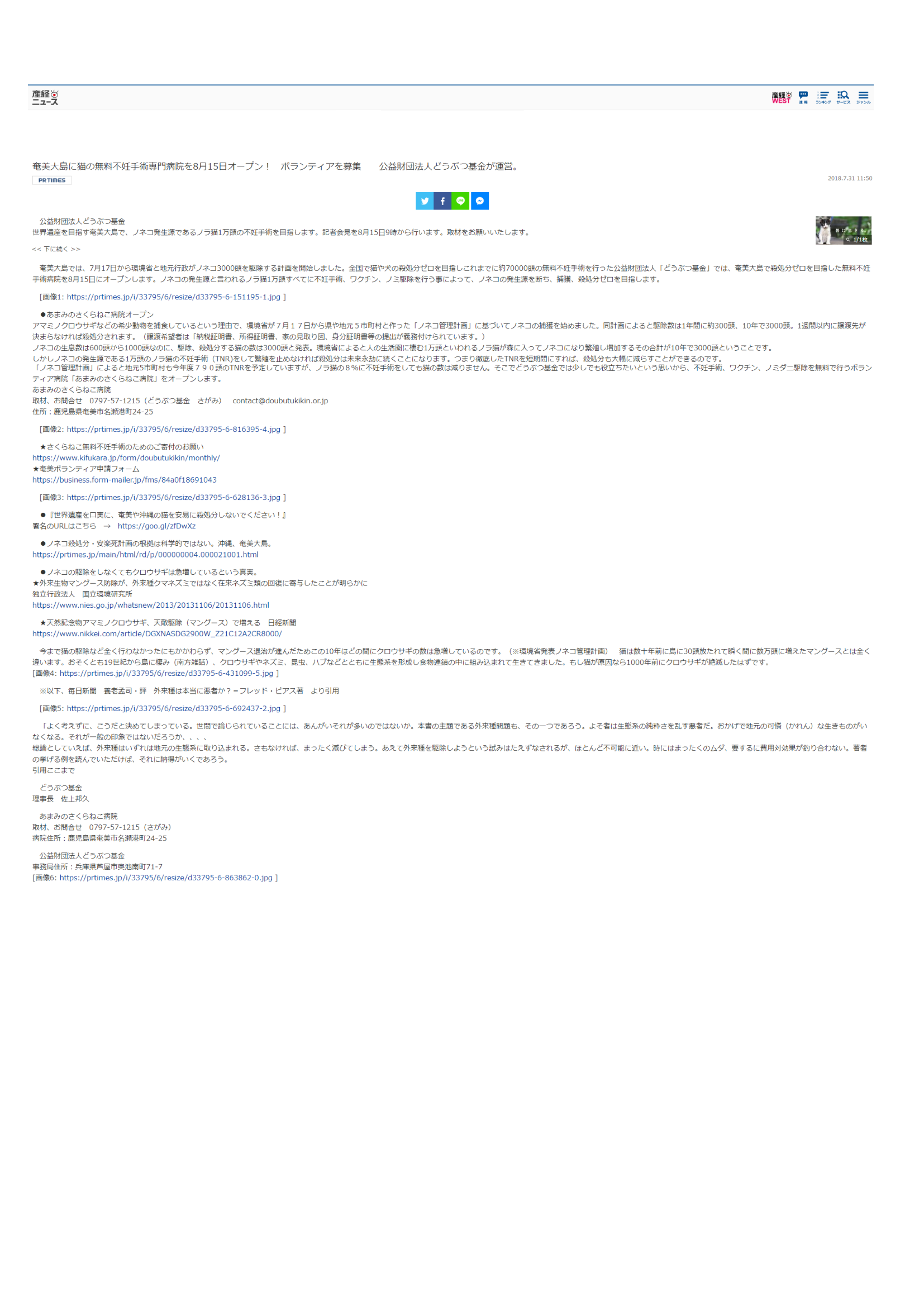 「さくらねこ無料不妊手術事業」が紹介されました。