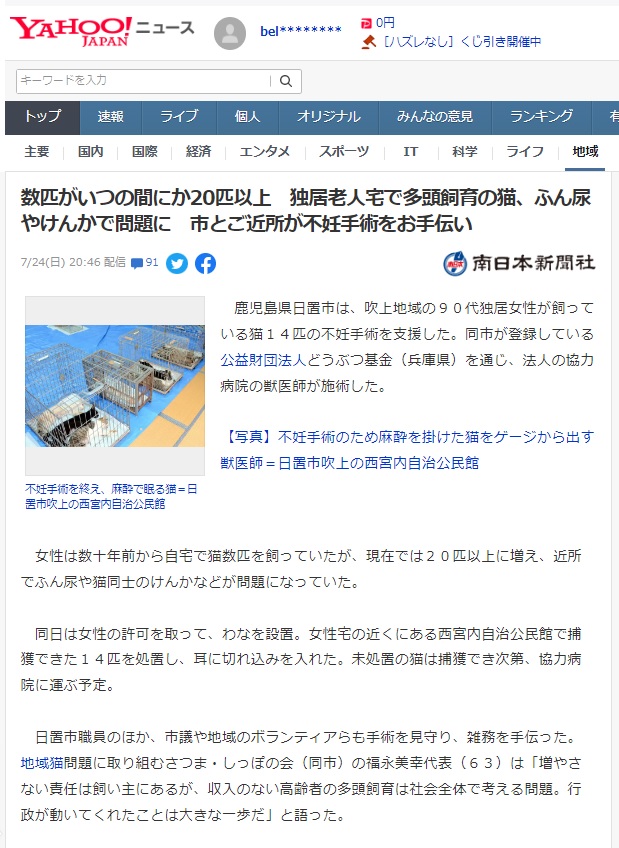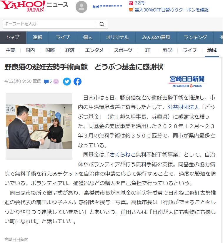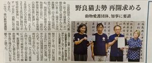 日南で野良猫の不妊去勢を 宮崎ねこの会寄付募る