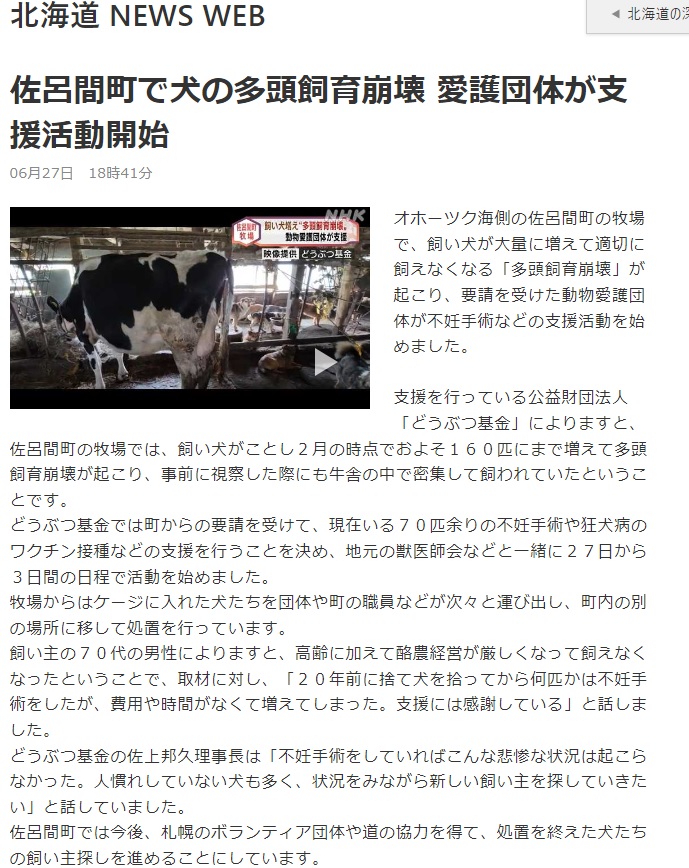 ウシとイヌ100匹以上 多頭飼育崩壊 牧場主「こんなに増やすつもりはなかった…」北海道・佐呂間町