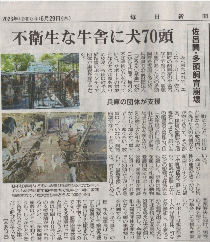 北海道佐呂間町で犬100頭と乳牛の多頭飼育崩壊が発生 どうぶつ基金が救済活動へ