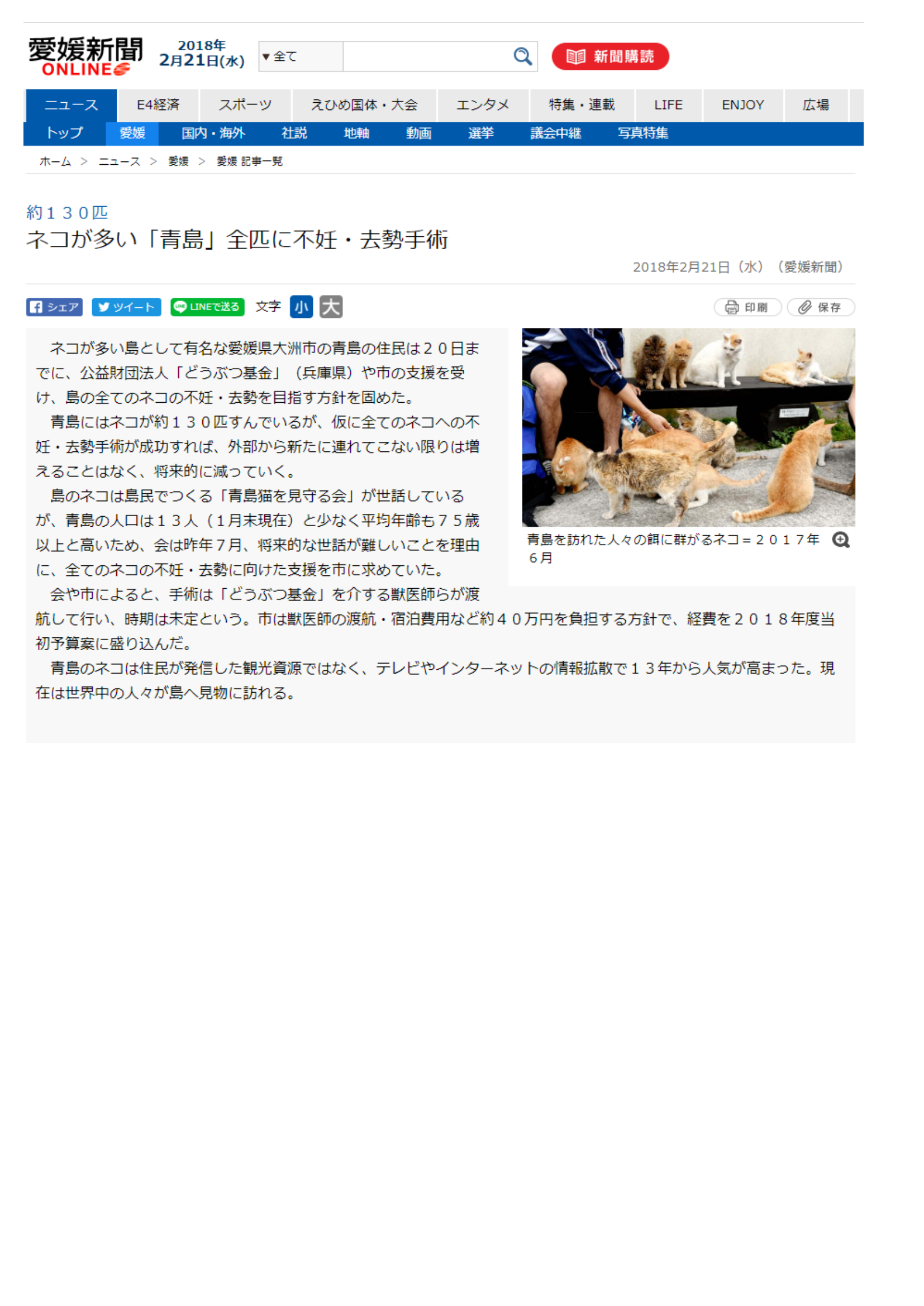 猫も人も幸せに暮らす島 一斉不妊手術から6年のいま