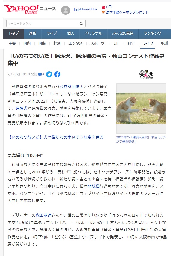 殺処分を逃れた犬や猫たちが主役の写真・動画コンテスト「いのちつないだワンニャン写真・動画コンテスト2022」入賞作品展を3年ぶりに開催!