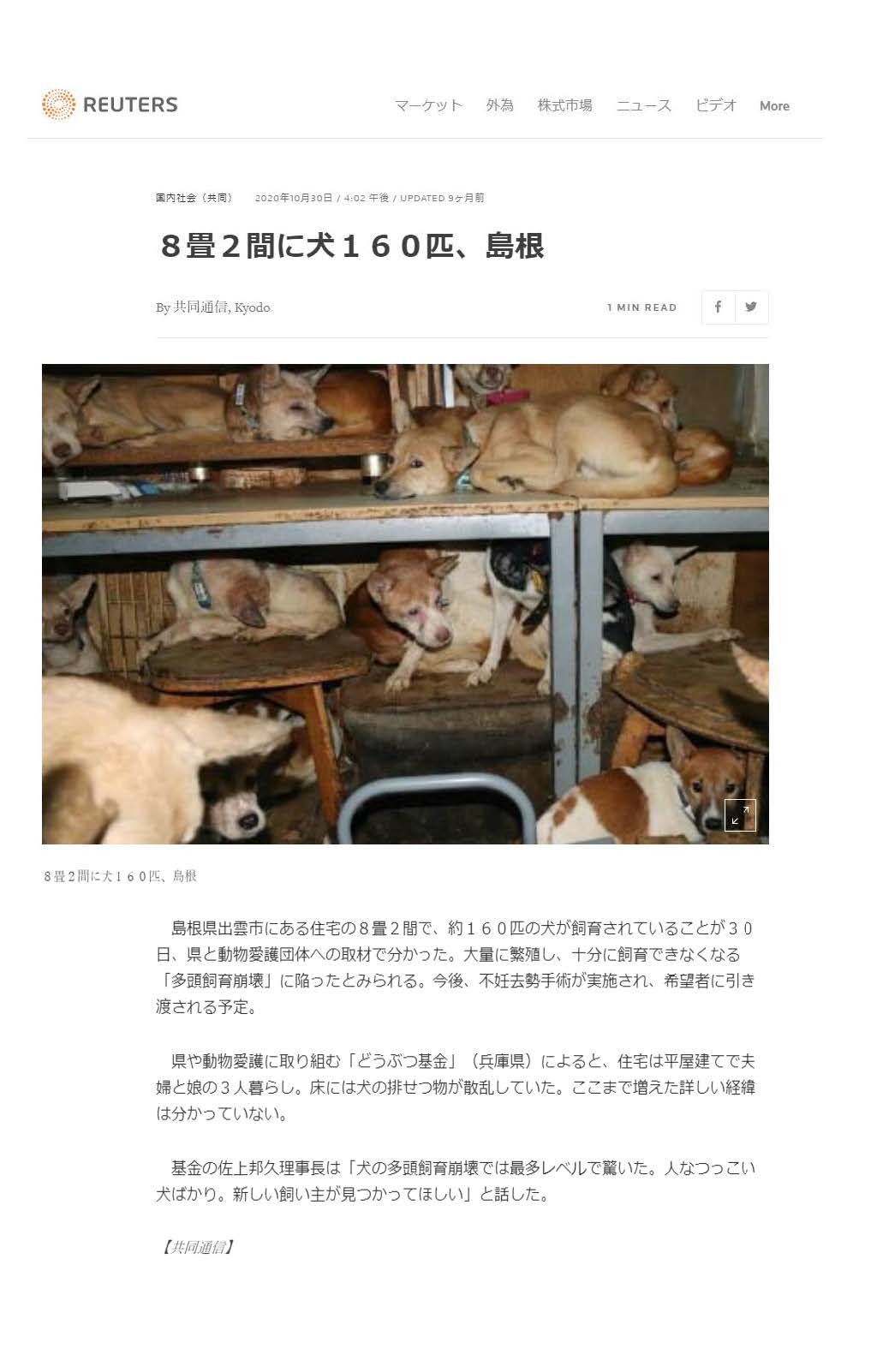犬164匹を8畳2間で 国内最大規模の多頭飼育崩壊か
