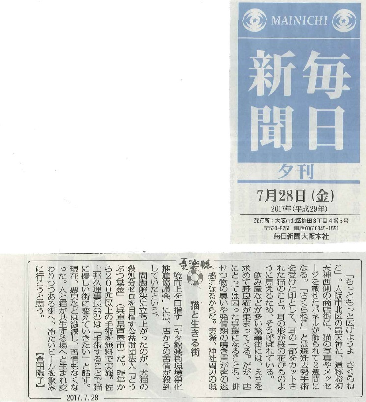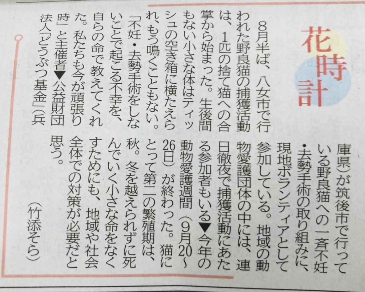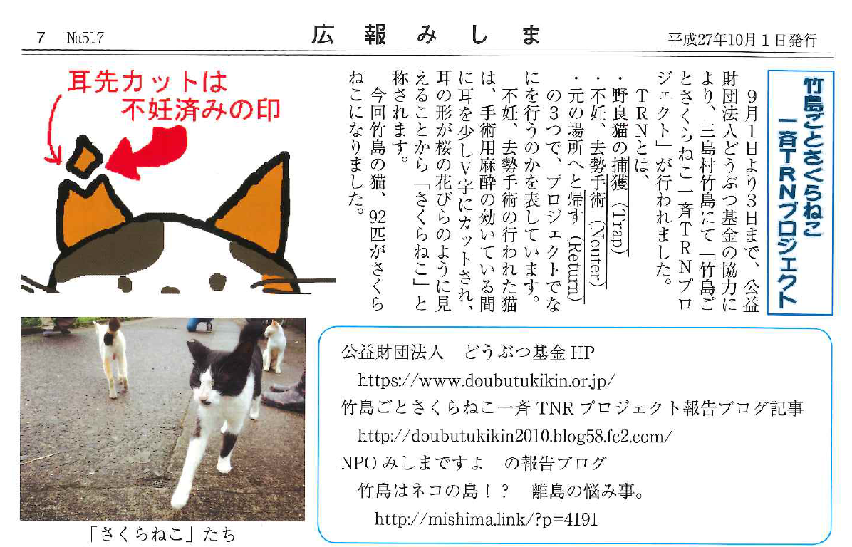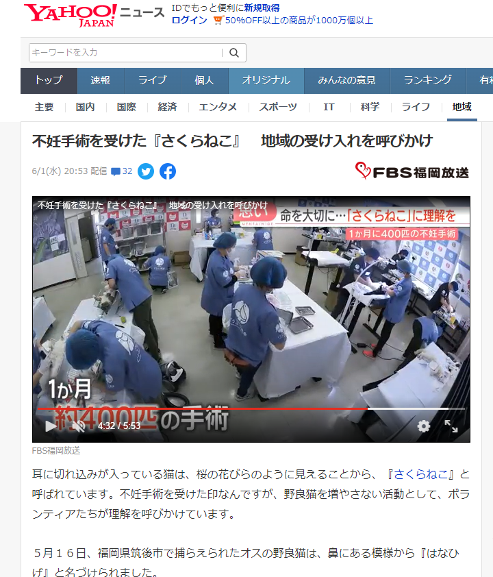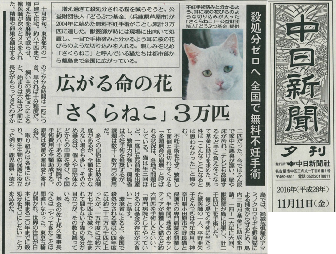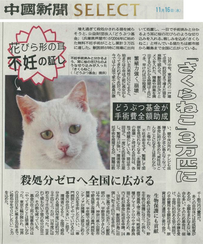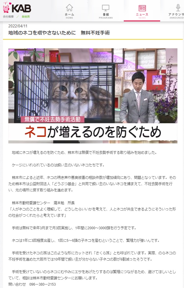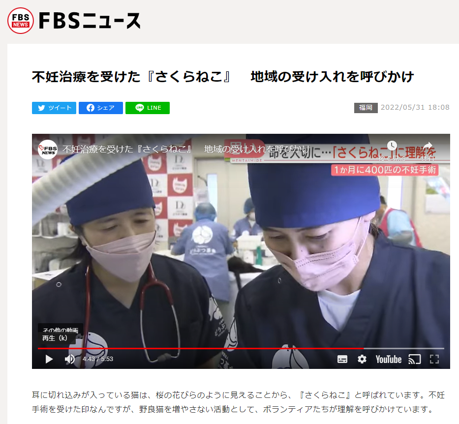 「さくらねこ無料不妊手術事業」が紹介されました。