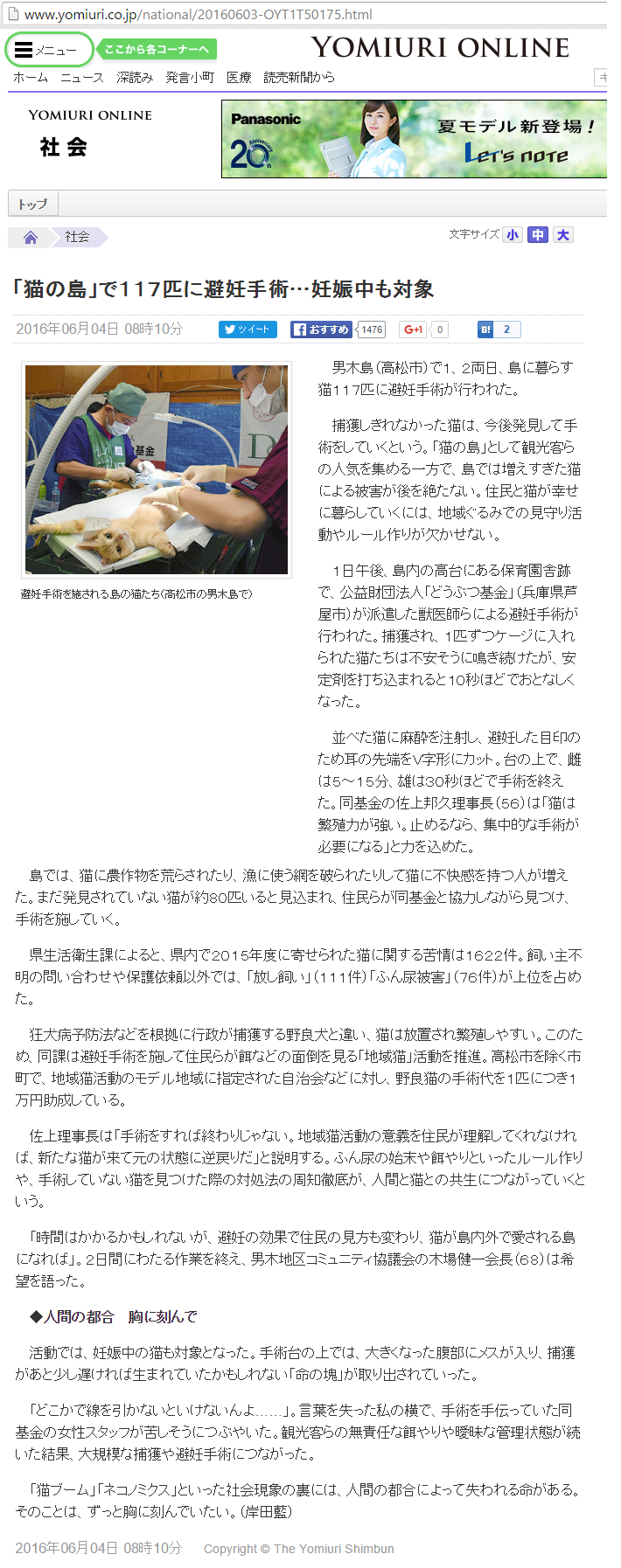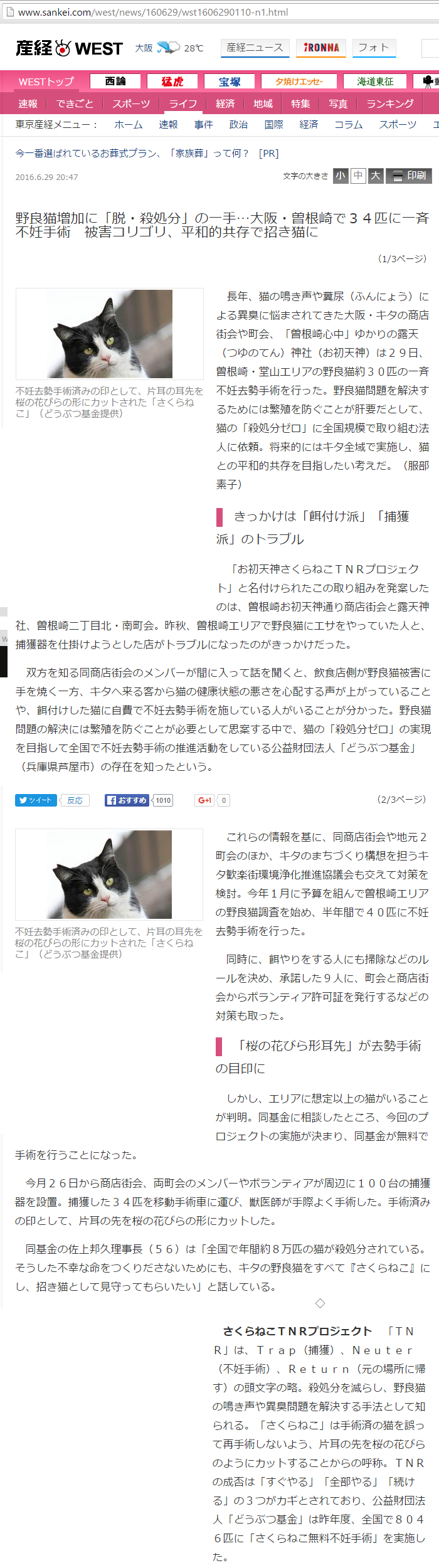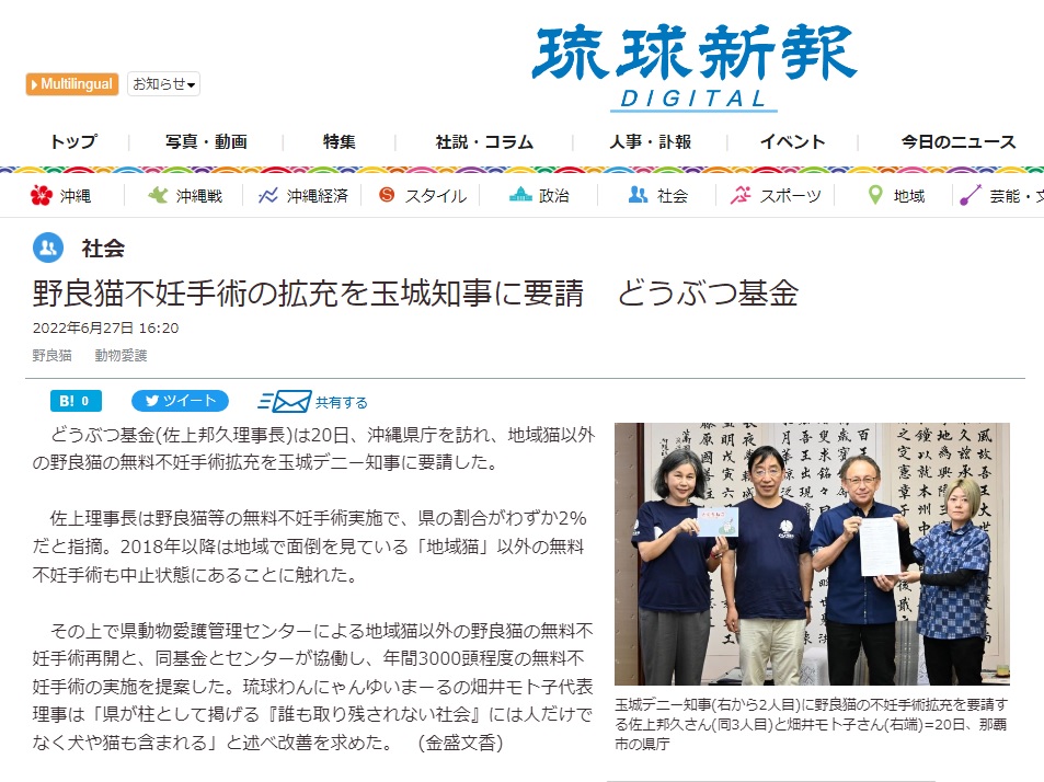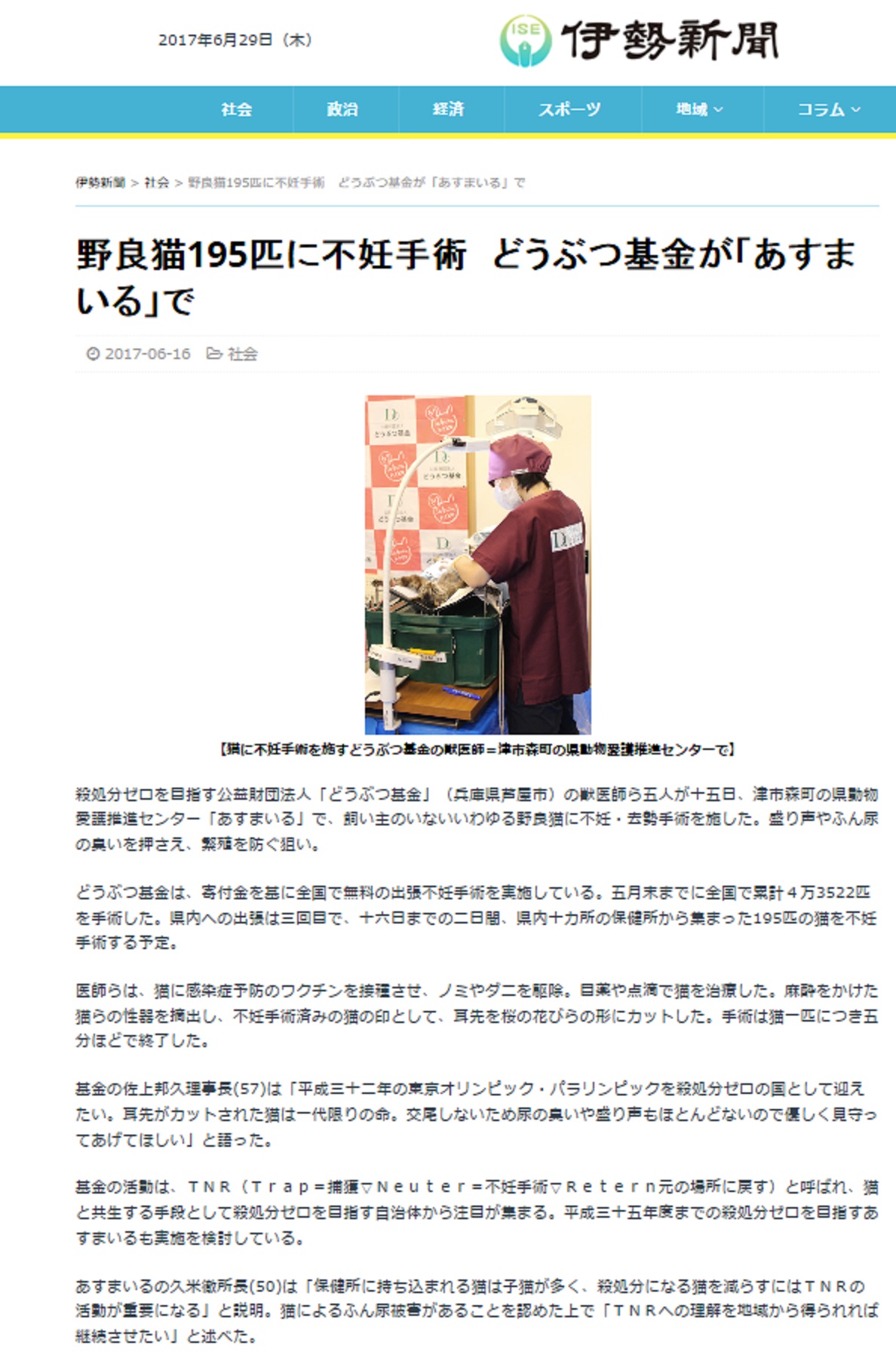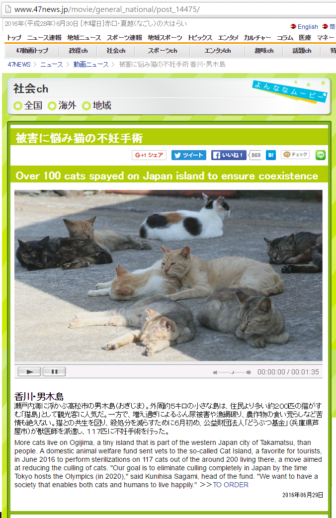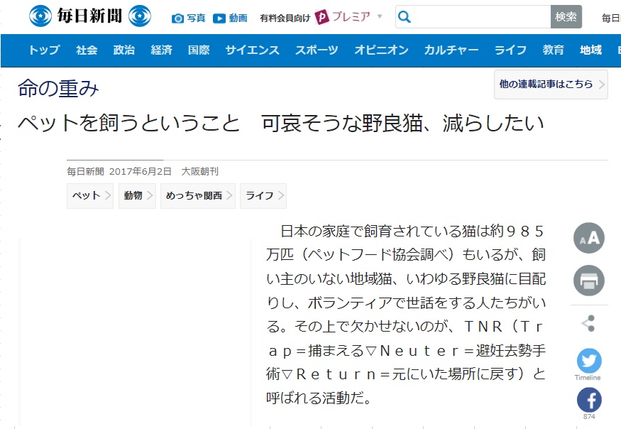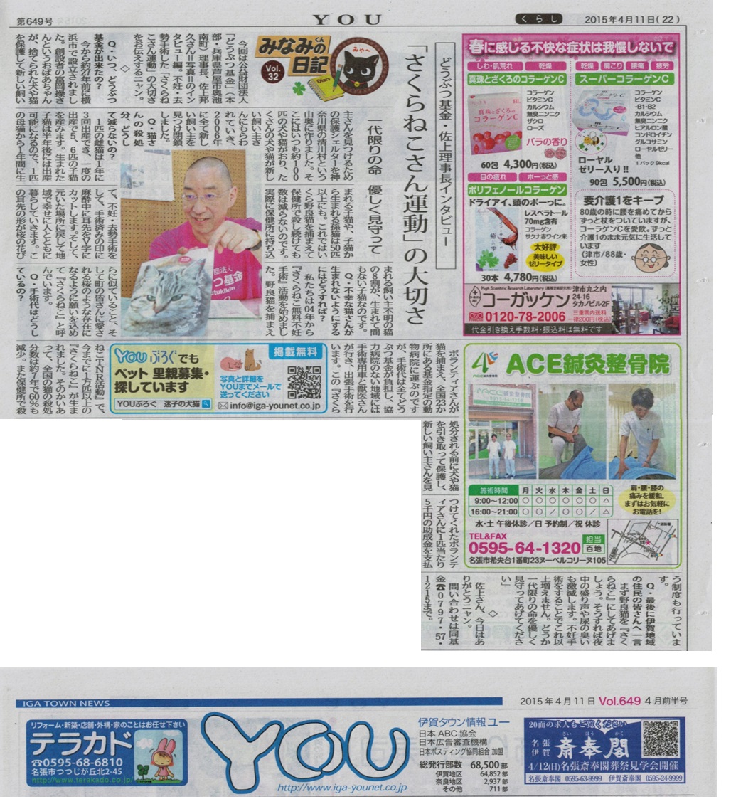 「さくらねこ無料不妊手術事業」が紹介されました。