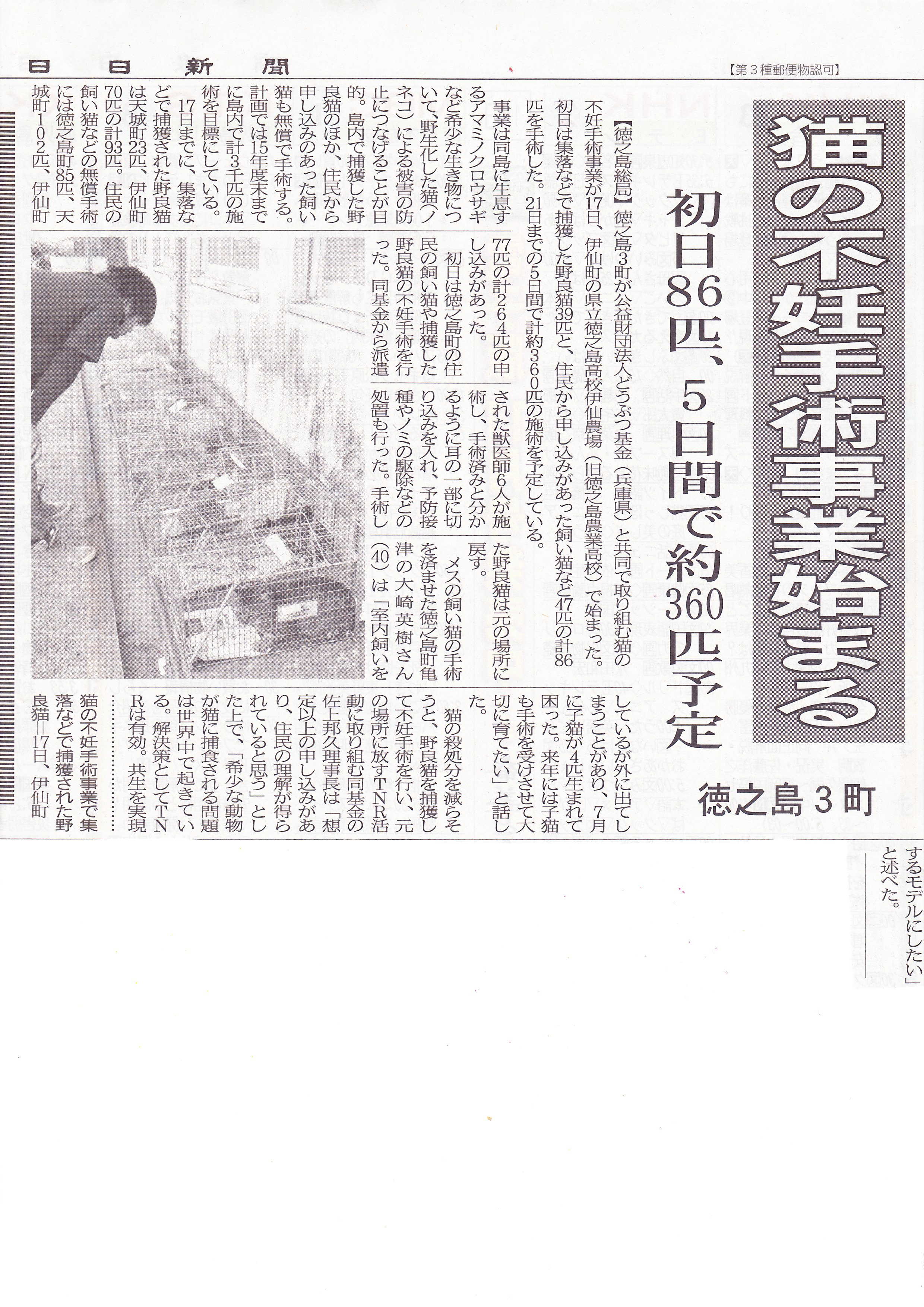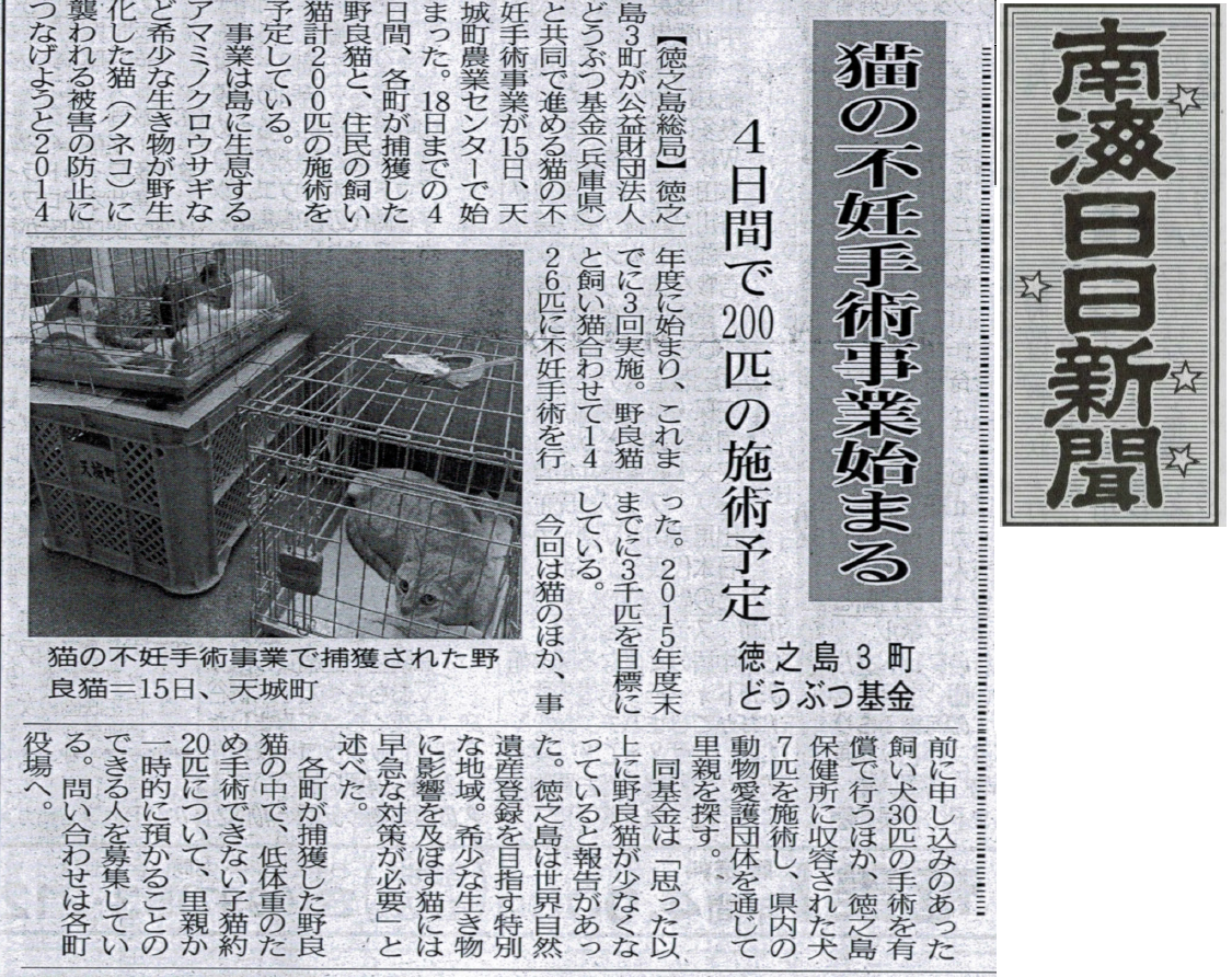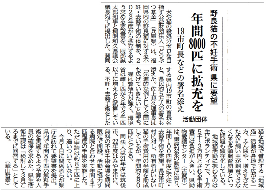 野良猫2千匹超不妊手術へ どうぶつ基金と宮崎ねこの会