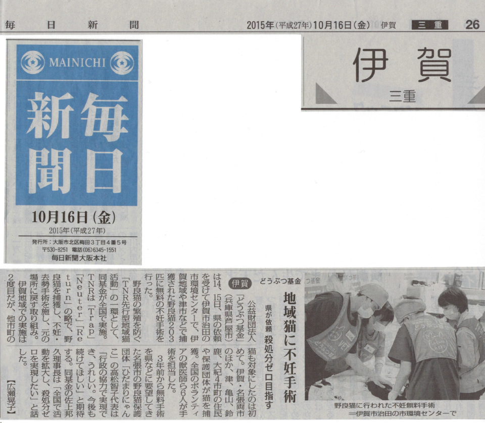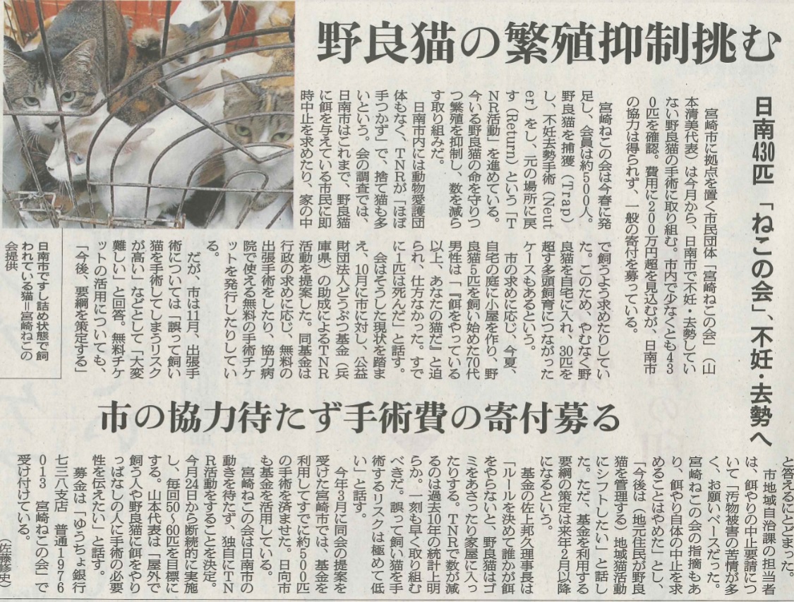 日南で野良猫の不妊去勢を 宮崎ねこの会寄付募る