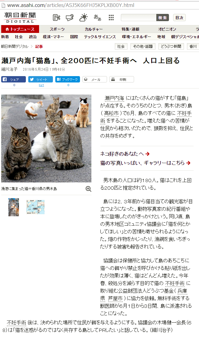 北九州「猫の島」謎の急減 5年で3分の1 毒殺?刑事告発検討