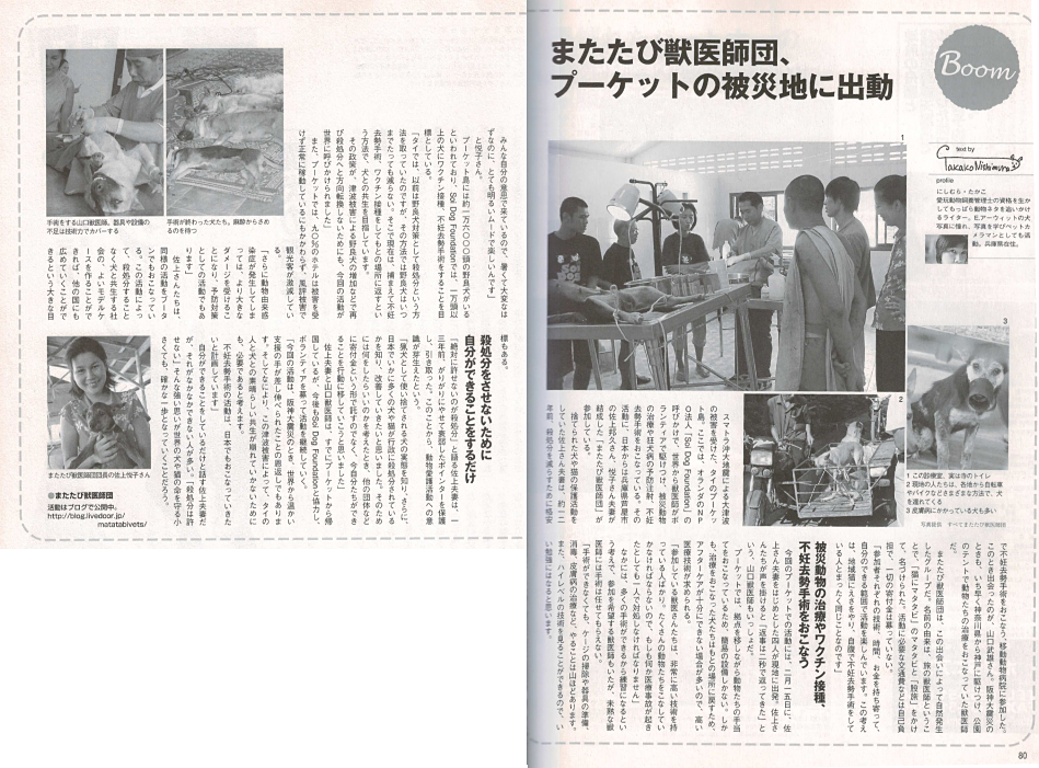 「またたび獣医師団」のプーケット(タイ)での被災動物保護活動について寄稿。 ※当事業はどうぶつ基金主催ではありません。