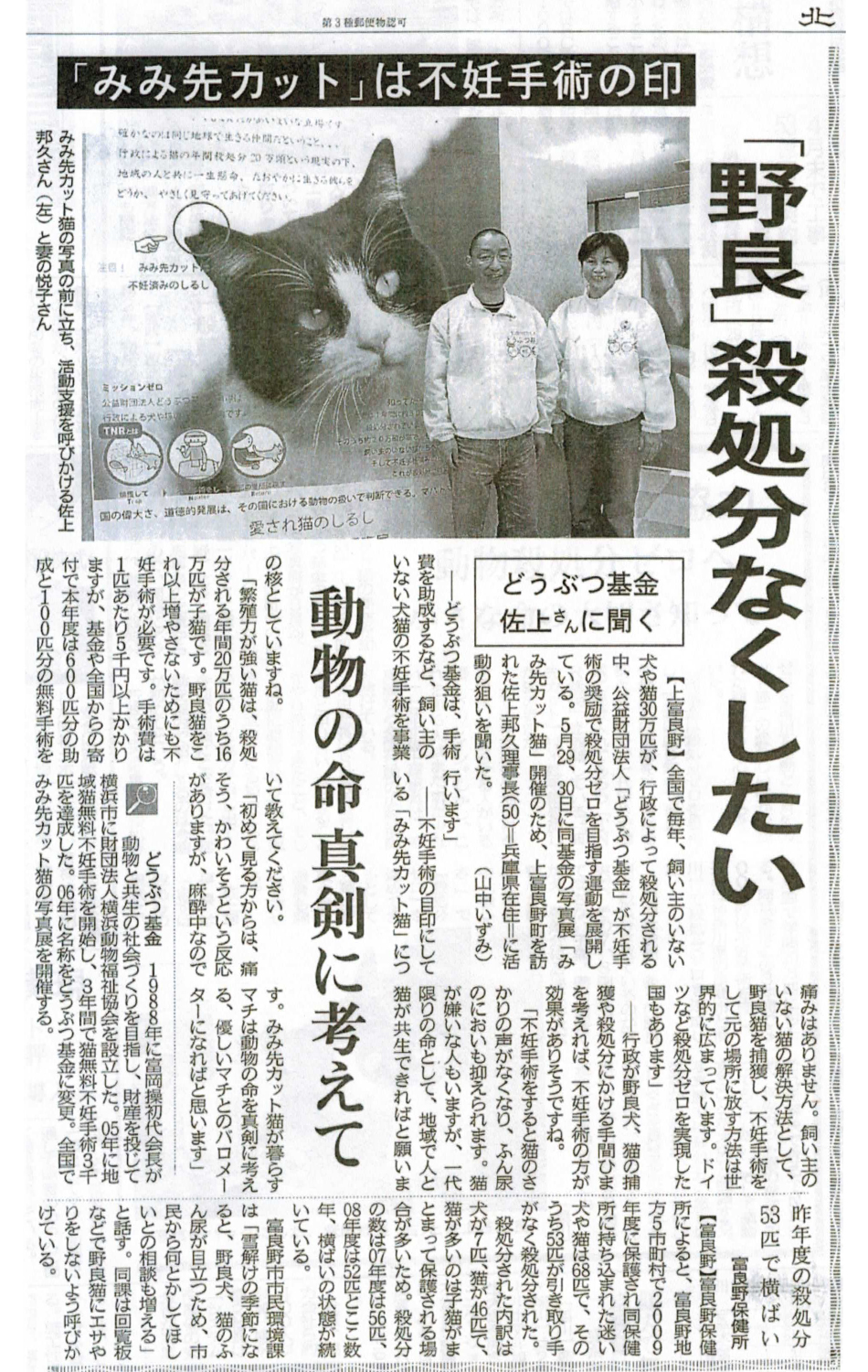 殺処分ゼロへ 野良猫の不妊手術普及願い 動物病院の夫妻奮闘