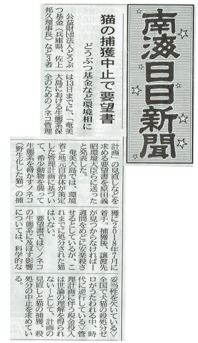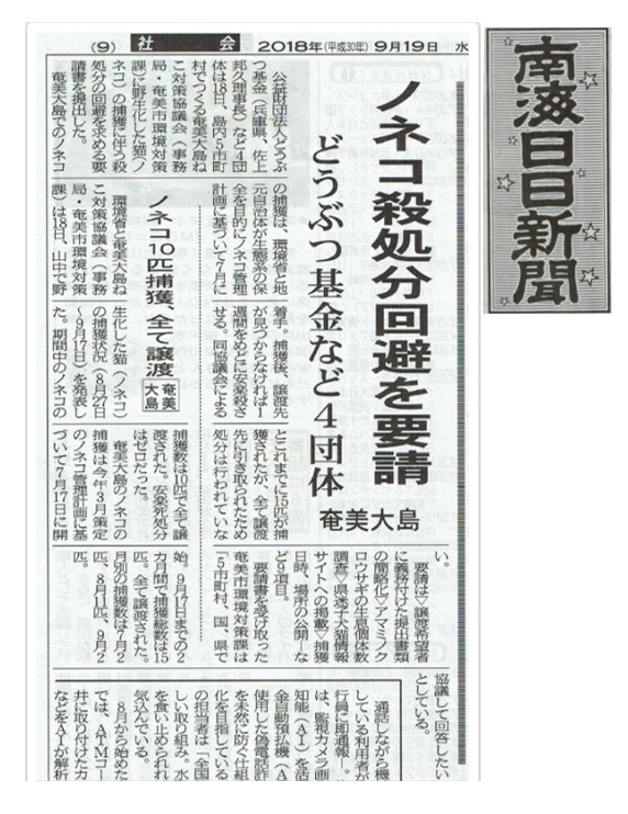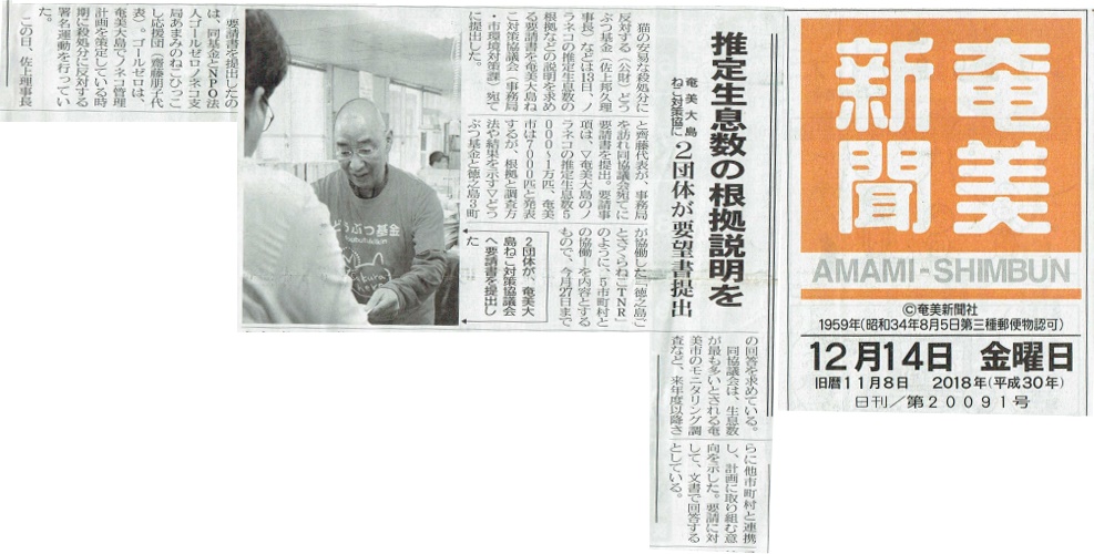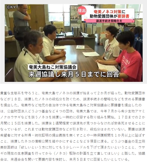 奄美の猫3千頭駆除 殺処分反対!生きるチャンスを!要請書提出