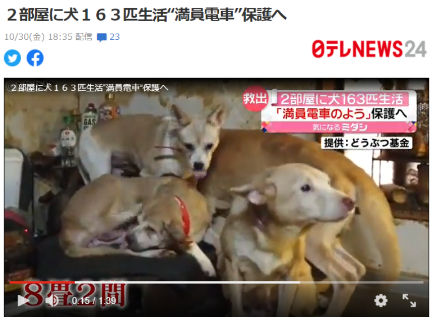 犬164匹を8畳2間で 国内最大規模の多頭飼育崩壊か