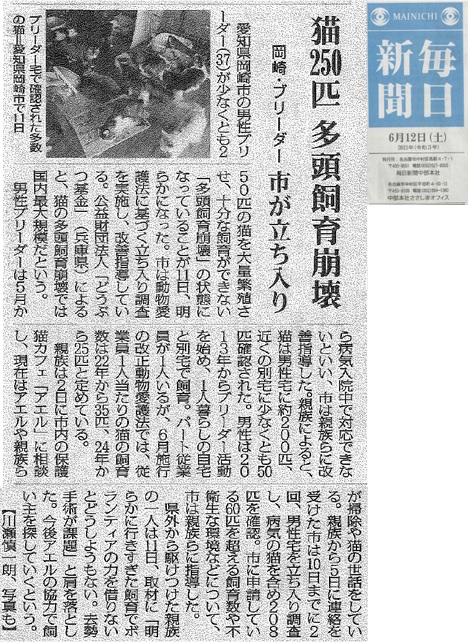 猫の多頭飼育崩壊を防ぎたい 不妊去勢手術、基金で自治体支援