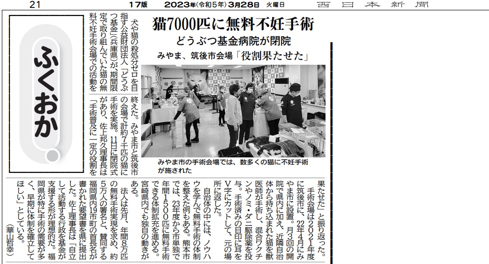 どうぶつ基金「さくらねこ無料不妊手術事業」